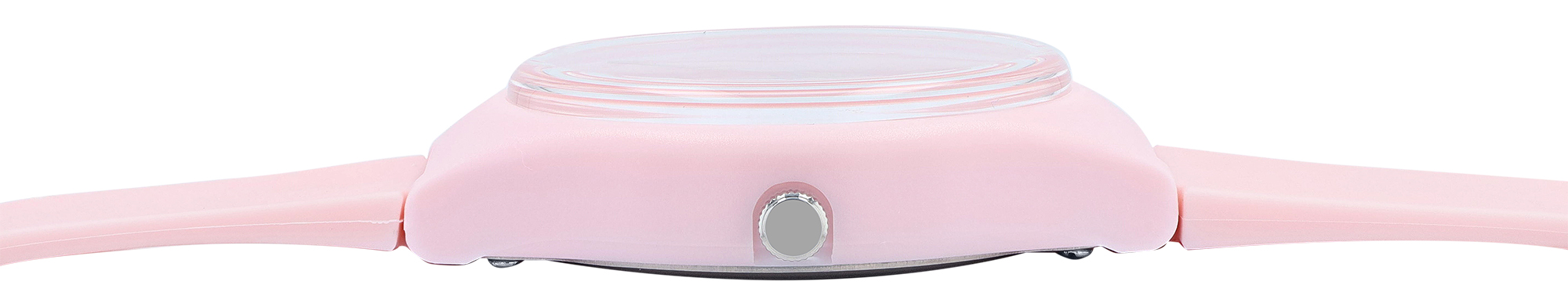 Das leichte Kunststoffgehäuse Ø 38 mm und das robuste Kunststoffglas schützen das Zifferblatt. Für hohen Tragekomfort sorgt das angenehme Silikonarmband 21 mm breit, konisch zulaufend, Gesamtlänge 25 cm mit Dornschließe.