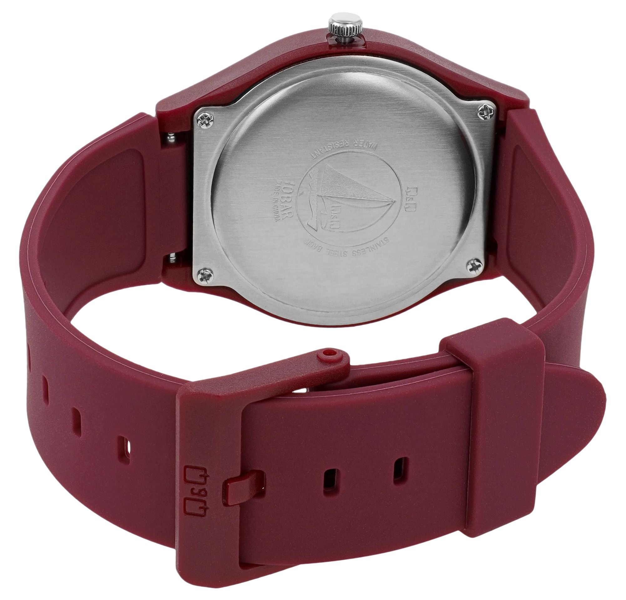 Produktinformationen "Q&Q Damen-/ Jugenduhr mit Silikonarmband, 10 Bar, Ø 38 mm, bordeaux"
