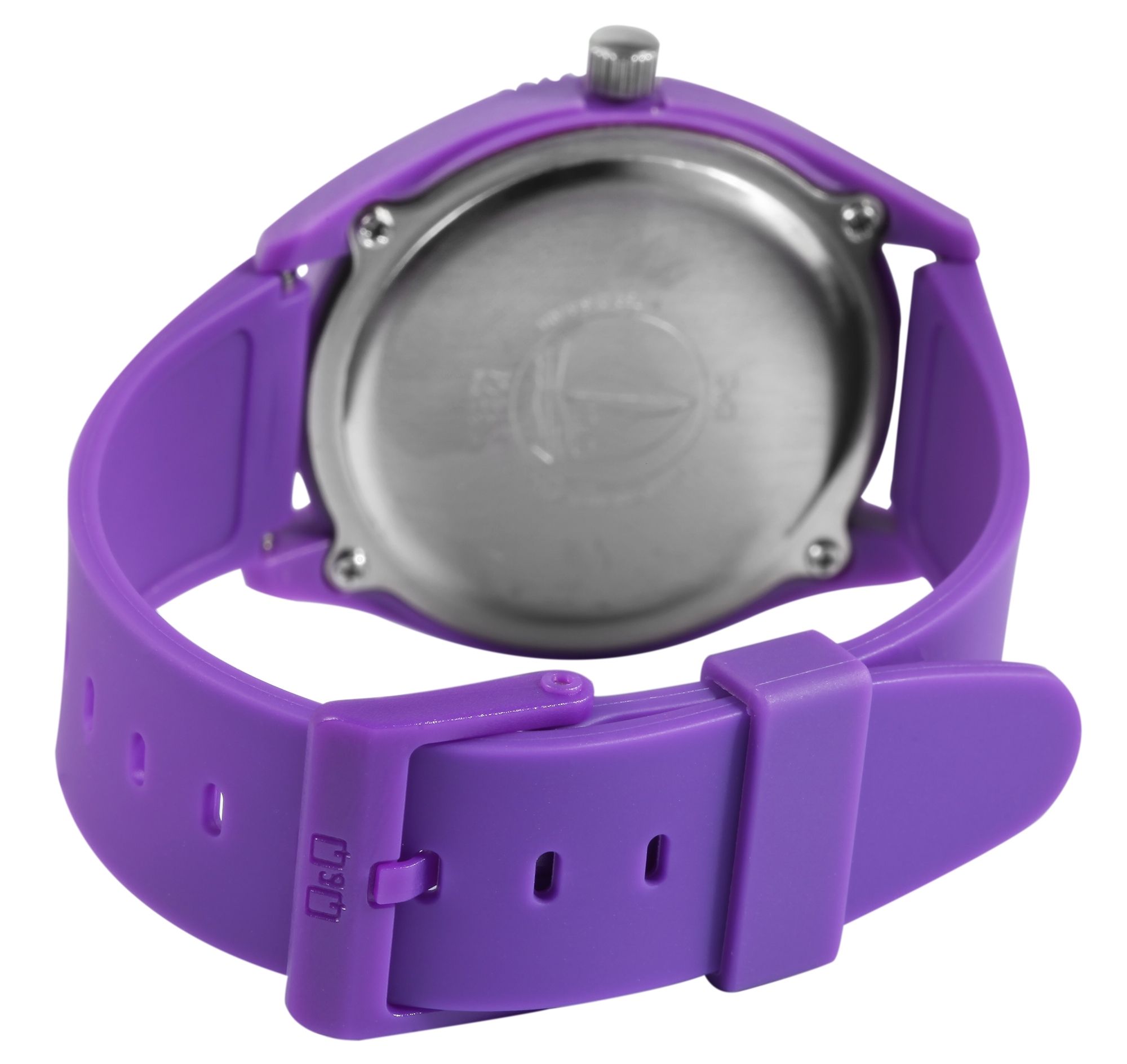 Die analoge 3-Zeiger Damenuhr der Marke Q&Q - by Citizen Watch Co. LTD verfügt über ein hochwertiges und ganggenaues Quarzuhrwerk. Das lilafarbene Silikonarmband ist am Anstoß 21 mm breit und lässt sich mit einer lilanen Dornschließe öffnen und schließen. Die Gesamtlänge der Uhr beträgt 25 cm. Das lilane Kunststoffgehäuse mit Mineralglas hat eine Abmessung von 41 mm im Durchmesser und einer Gehäusehöhe von 11 mm. Der Gehäuseboden ist aus Edelstahl gefertigt und mit vier Edelstahlschrauben am Gehäuse befestigt. Die Uhrzeit lässt sich durch das lilafarbene Zifferblatt mit weißen Ziffern im arabischen Stil ideal ablesen. Des Weiteren bietet die Armbanduhr durch das weiche Silikonarmband einen angenehmen Tragekomfort und lässt sich durch das sportliche Design wunderbar kombinieren. Zudem erweist sich das Material als besonders hautfreundlich und eignet sich dadurch ideal für Allergiker.