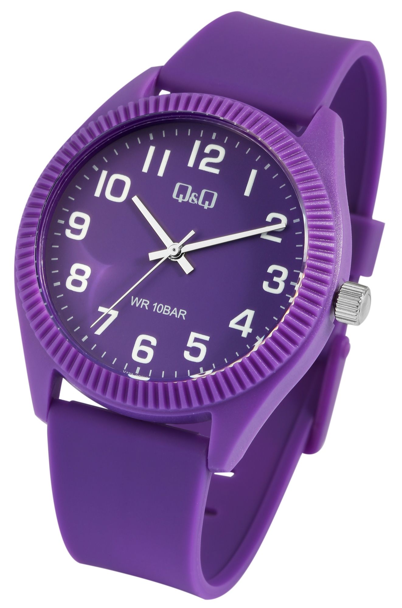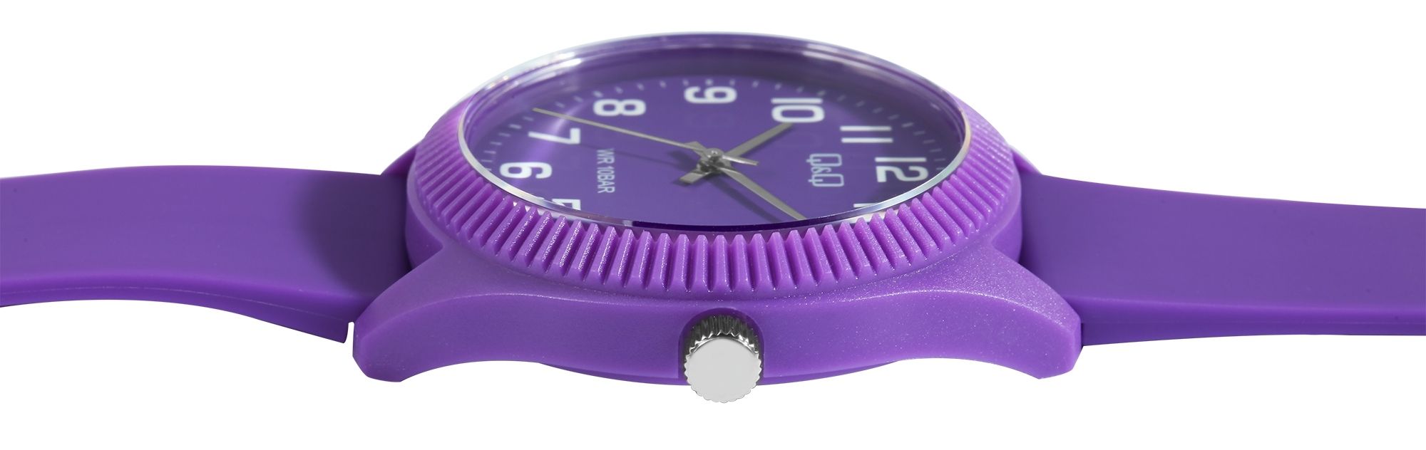 Produktinformationen "Q&Q Damenuhr mit Silikonarmband, 10 Bar, lilafarben"