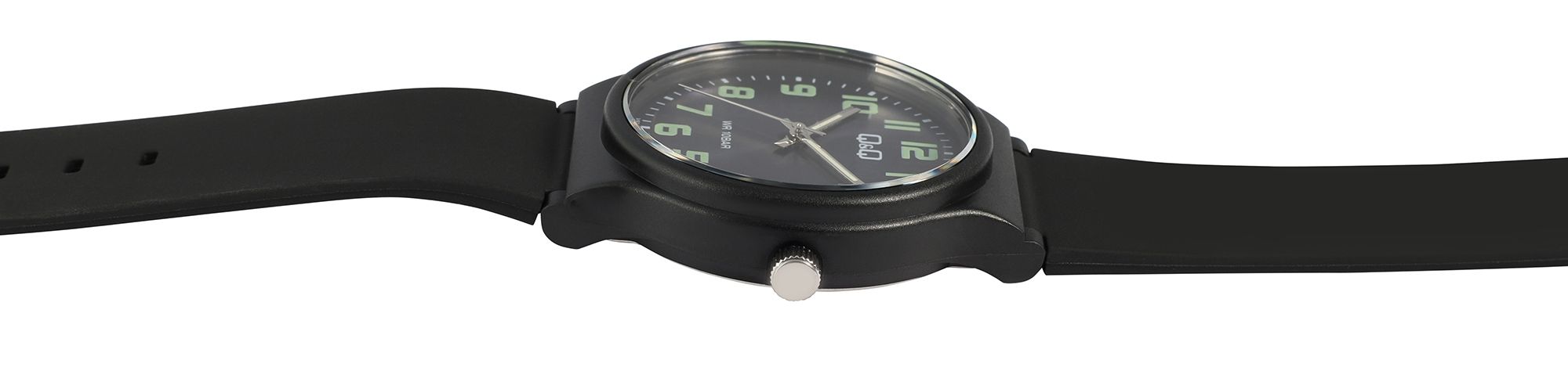 Diese vielseitige Q&Q - by Citizen Watch Co. LTD Uhr mit Silikonarmband steht für Stil und Funktionalität und ist das perfekte Accessoire für jede Gelegenheit, ob im Alltag oder bei sportlichen Aktivitäten. Das Silikonarmband bietet einen hohen Tragekomfort und schmiegt sich angenehm an das Handgelenk. Dank der praktischen Dornschließe lässt sich die Armbanduhr individuell anpassen. Das Gehäuse besteht aus robustem Kunststoff, während der Gehäuseboden aus Edelstahl gefertigt ist, was der Uhr zusätzliche Langlebigkeit verleiht.