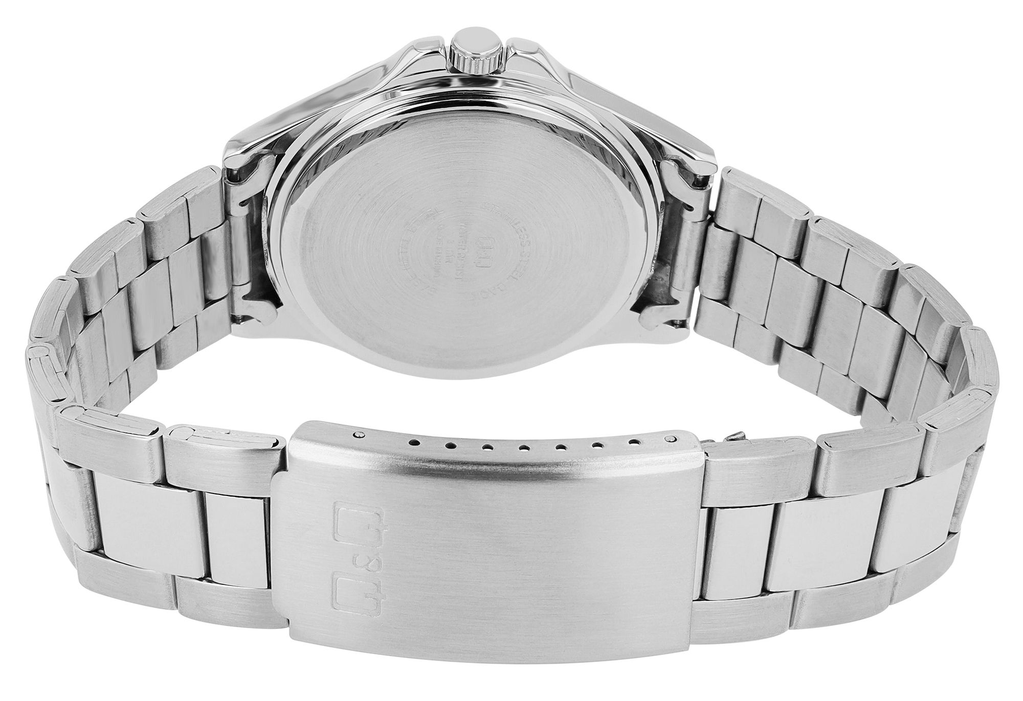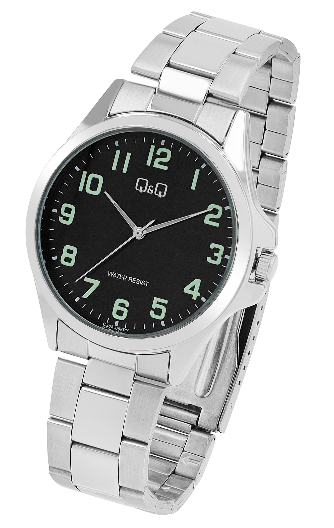 Die Uhr ist wasserdicht bis zu 3 ATM, was sie vor Spritzern und leichtem Regen schützt. Dies macht sie zu einer verlässlichen Wahl für den Alltag. Im Inneren dieser Uhr arbeitet ein hochwertiges Quarzuhrwerk, das für äußerste Präzision und Zuverlässigkeit sorgt. Diese Q&Q Herrenuhr ist nicht nur ein Zeitmesser, sondern auch ein Statement für Stil und Qualität.