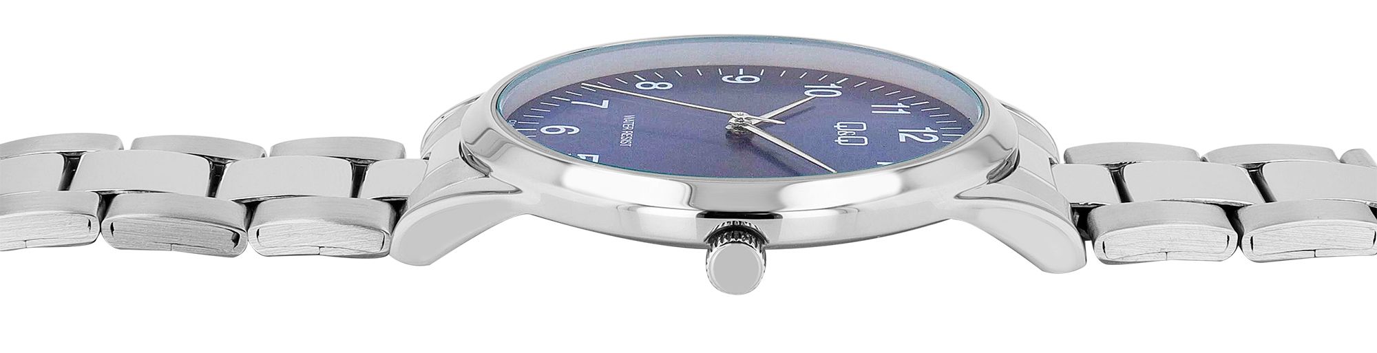 Produktinformationen "Q&Q Herrenuhr, Gliederarmband, Edelstahl, silberfarben/blau, 3 ATM, Ø 40 mm"