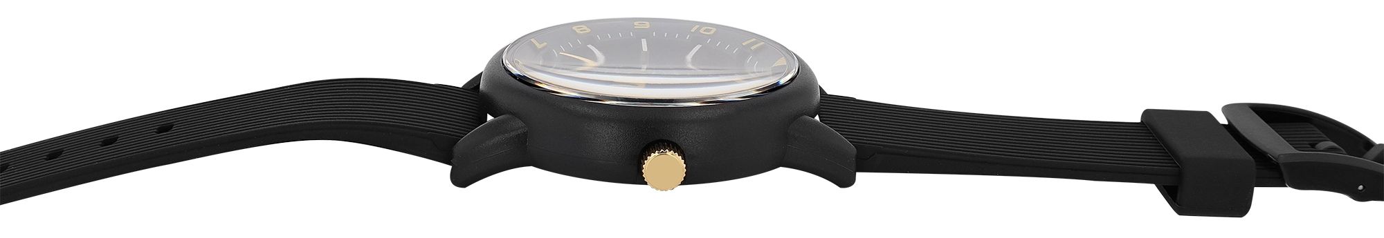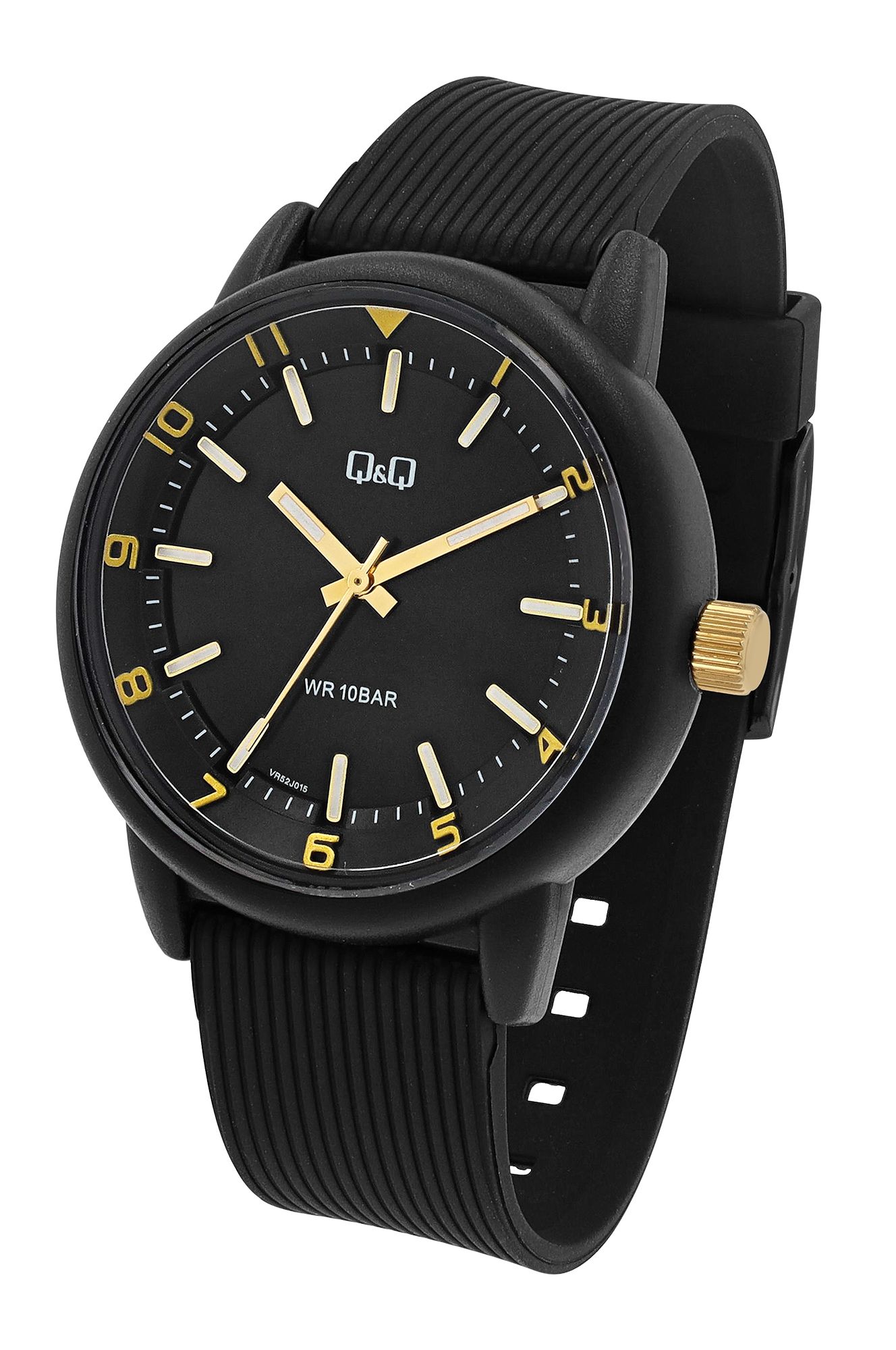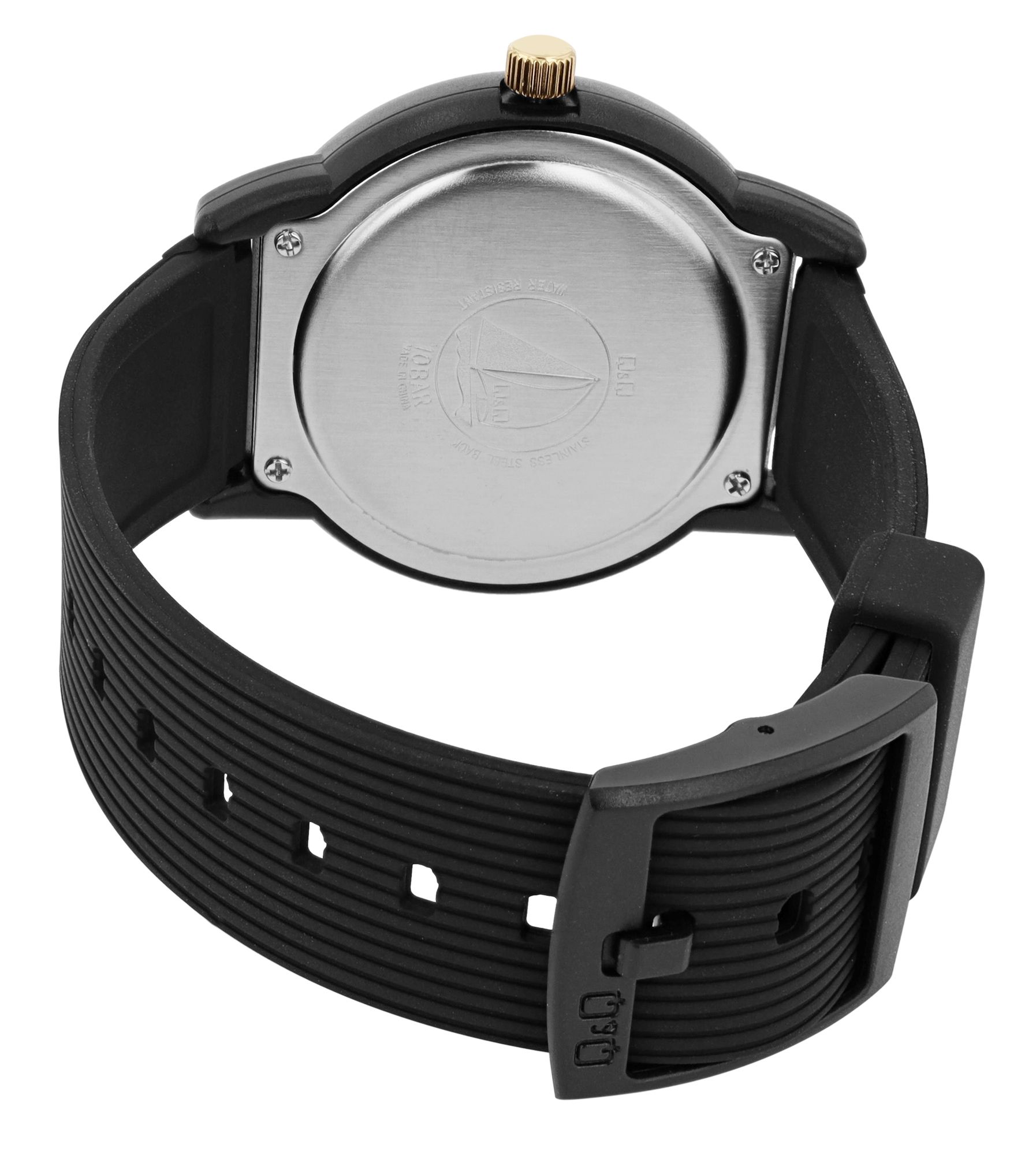 Produktinformationen "Q&Q Herrenuhr, Kunststoff, Silikonarmband, schwarz/goldfarben, 10 ATM, Ø 42 mm"