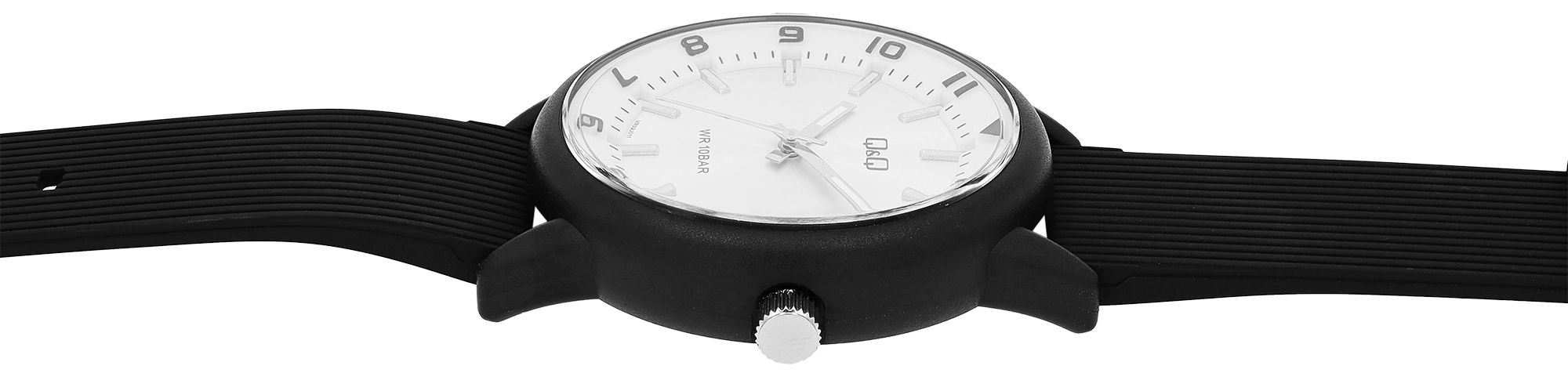 Produktinformationen "Q&Q Herrenuhr, Kunststoff, Silikonarmband, schwarz/silberfarben, 10 ATM, Ø 42 mm"