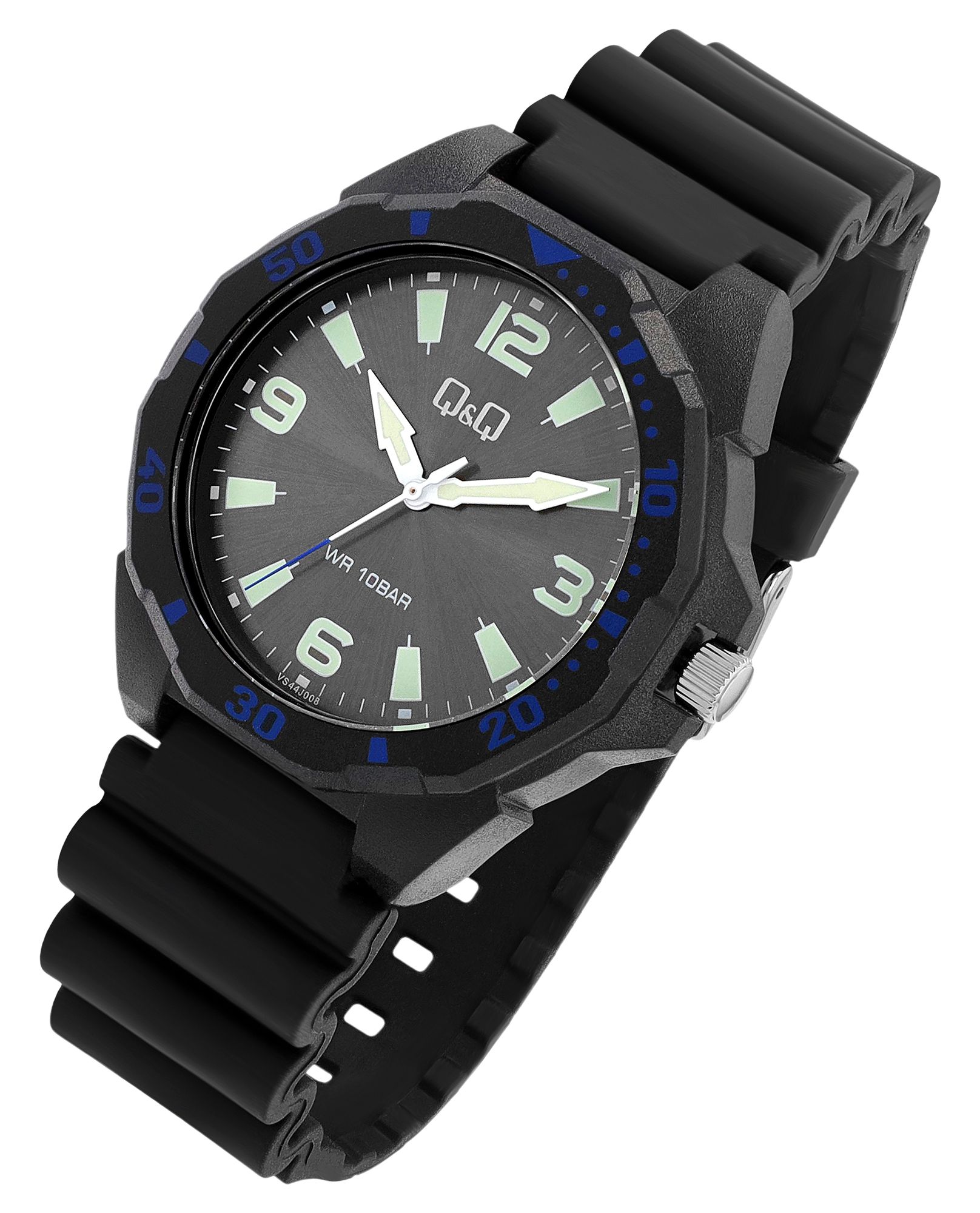 Produktinformationen "Q&Q Herrenuhr, Resinband, Ø 43 mm, schwarz/ blaue Details"