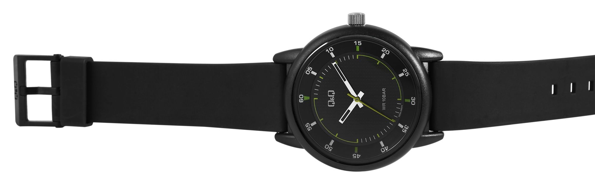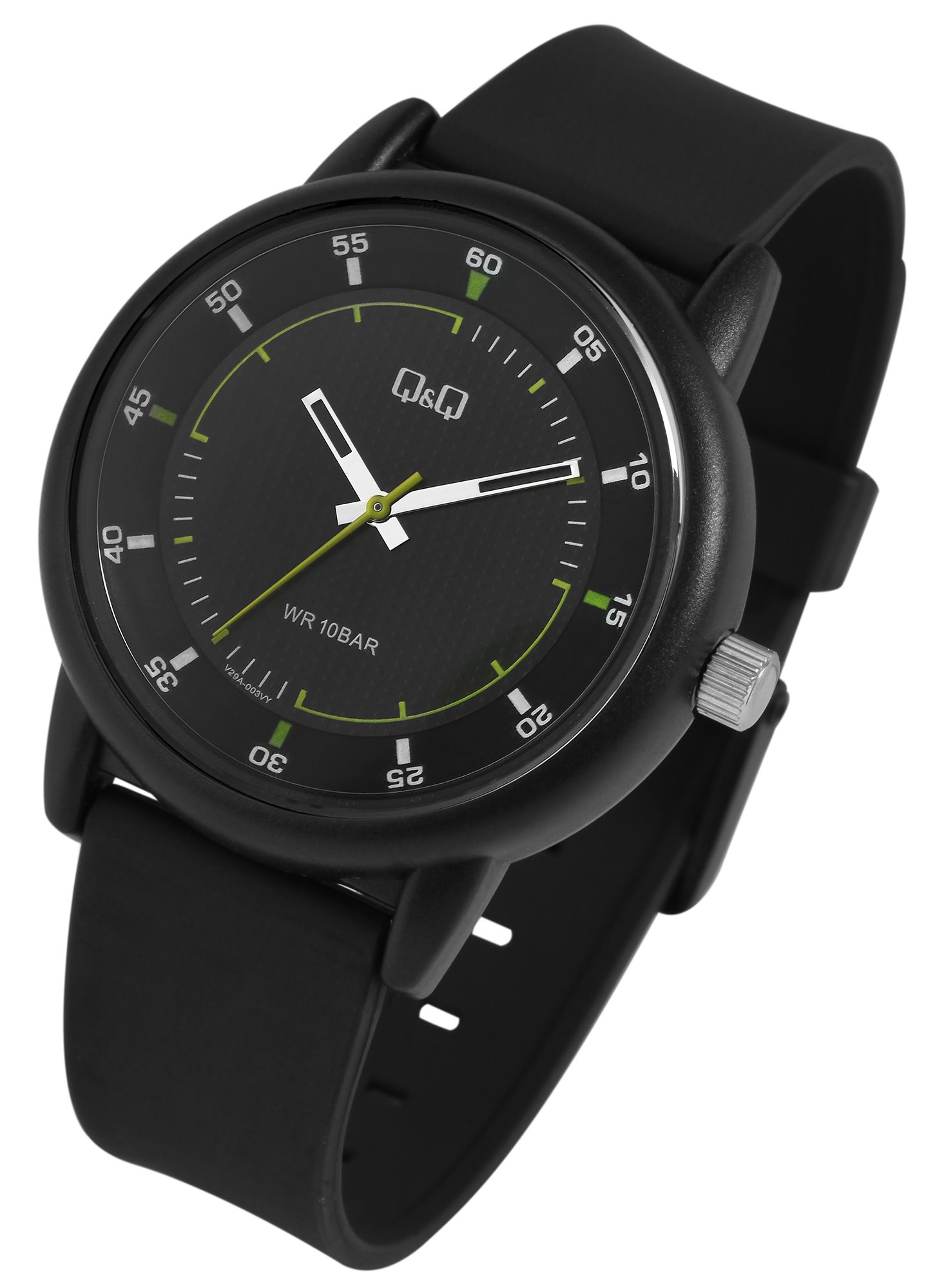Produktinformationen "Q&Q Herrenuhr Silikonarmband, Ø 42 mm, schwarz/grün"