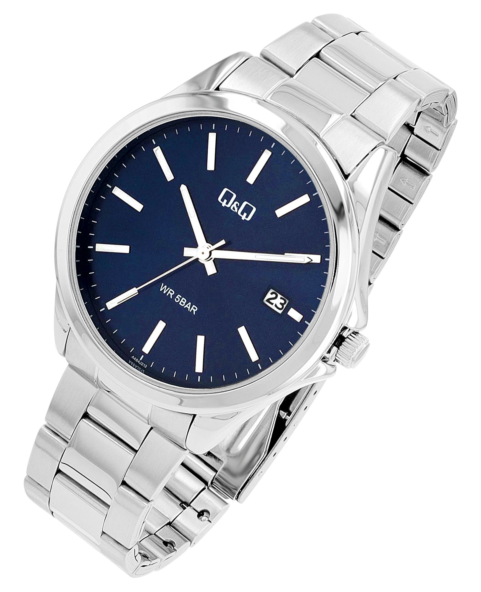 Produktinformationen "Q&Q Herrenuhr mit Edelstahlarmband, 5 ATM, Datumsanzeige, silberfarben/ZB blau"