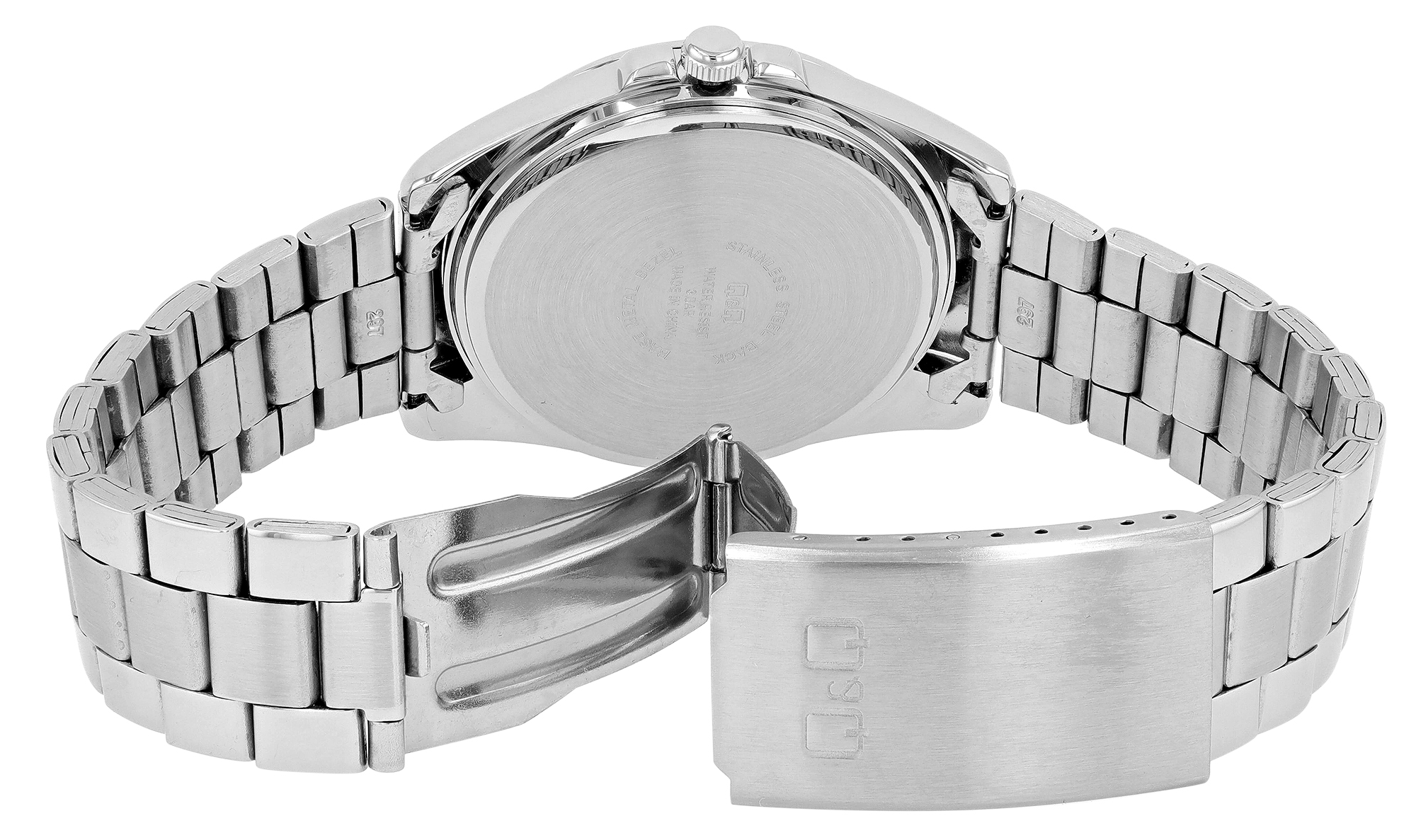 Diese Q&Q - by Citizen Watch Co. LTD Herrenuhr beeindruckt auf den ersten Blick. Das Edelstahl-Gliederarmband ist nicht nur von höchster Qualität, sondern kann auch nach Belieben angepasst werden, um perfekt zu jedem Handgelenk zu passen. Dank herausnehmbarer Elemente lässt sich die Länge des Armbandes individuell verändern. Das Gehäuse aus Metall ist ein Statement für Widerstandsfähigkeit und Stil. Das Mineralglas schützt das Zifferblatt und trägt zur Kratzfestigkeit bei, während die Edelstahlfaltschließe für einen sicheren und bequemen Sitz sorgt.