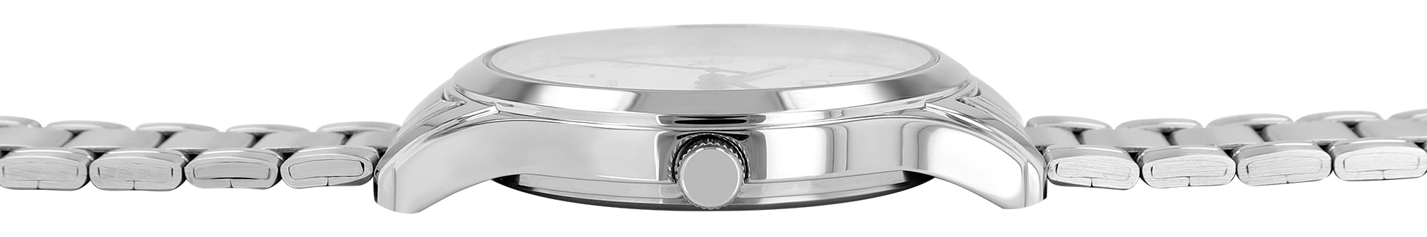 Die analoge 3-Zeiger Herrenarmbanduhr der Marke Q&Q verfügt über ein hochwertiges und ganggenaues Quarzuhrwerk der Marke Miyota. Das Edelstahlarmband ist im Anstoß 18 mm breit und lässt sich über ein Edelstahl-Hakenverschluß öffnen und schließen. Das Uhrenarmband ist besonders robust und langlebig und lässt sich aufgrund der herausnehmbaren Elemente beliebig kürzen. Die Gesamtlänge der Uhr beträgt 24 cm. Das silberfarbene Metallgehäuse mit Mineralglas hat eine Abmessung von 40 mm im Durchmesser und einer Gehäusehöhe von 9 mm. Die Verbindung vom glänzenden Uhrengehäuse zum mattierten Gliederarmband ergibt eine harmonische Einheit. Die Uhrzeit lässt sich durch das weiße, übersichtlich gestaltete Zifferblatt mit schwarzen Zahlen ideal ablesen. Der Gehäuseboden ist ebenfalls aus Edelstahl gefertigt und die Uhr hat eine Wasserdichtigkeit von 3 bar. Dank der hochwertig verarbeiteten Materialien erweist sich dieser Zeitmesser als besonders hautfreundlich und eignet sich somit ideal für Allergiker. Die Herrenuhr besticht durch ihr zeitloses und zeitgleich modernes Design und lässt sich zu zahlreichen Gelegenheiten ausführen.