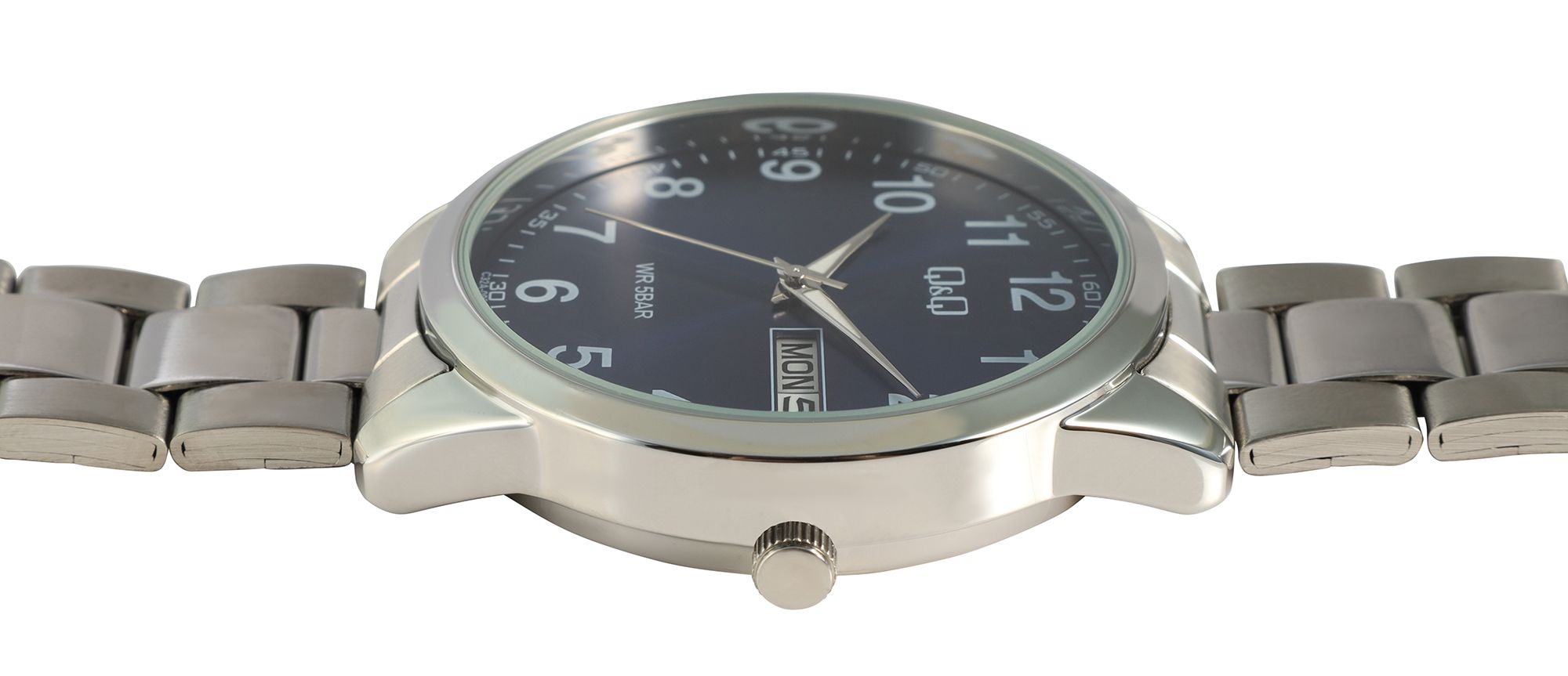 Produktinformationen "Q&Q Herrenuhr mit Gliederarmband aus Edelstahl, 5 ATM, silberfarben/ZB blau"