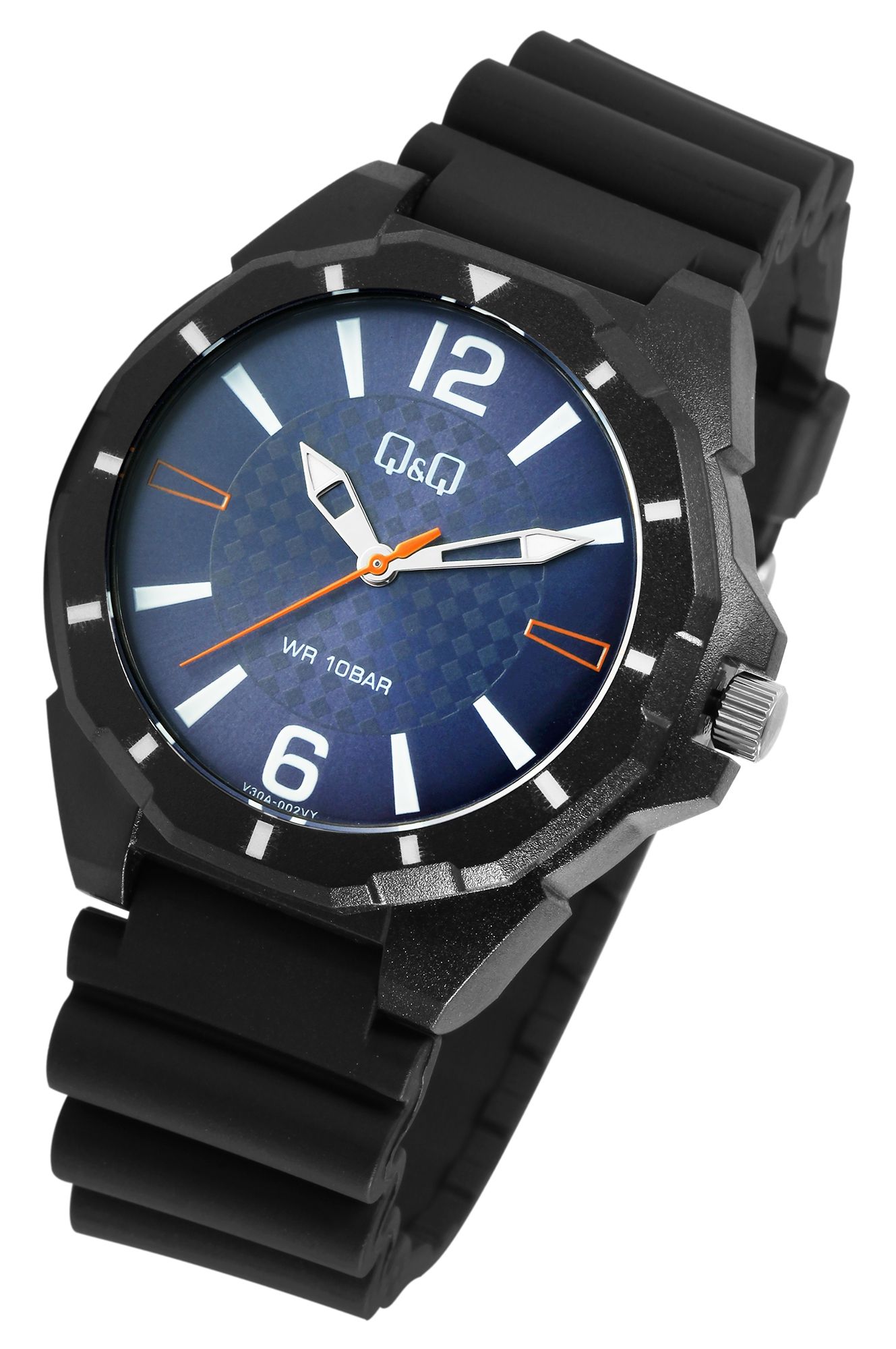 Produktinformationen "Q&Q Herrenuhr mit Resinband, Ø 43 mm, schwarz/ blau (orange)"