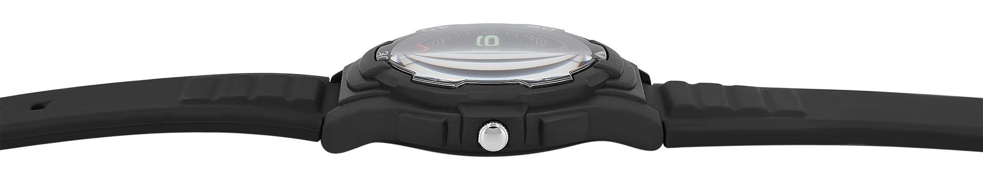 Die analoge 3-Zeiger Herrenarmbanduhr der Marke Q&Q - by Citizen Watch Co. LTD verfügt über ein hochwertiges Quarzuhrwerk. Das schwarze Silikonarmband ist am Anstoß 23 mm breit (Stegbreite 17 mm) und lässt sich mit einer silberfarbenen Dornschließe öffnen und schließen. Die Gesamtlänge der Uhr beträgt 24,5 cm. Das schwarze Kunststoffgehäuse mit Mineralglas hat eine Abmessung von 40 mm im Durchmesser und einer Gehäusehöhe von 12 mm. Der Gehäuseboden ist ebenfalls aus Kunststoff gefertigt. Durch die mit Superluminova beschichteten Zeiger und Indexe lässt sich auch im Dunkeln die Zeit gut ablesen. Die Uhr hat eine Wasserdichtigkeit von 10 bar.