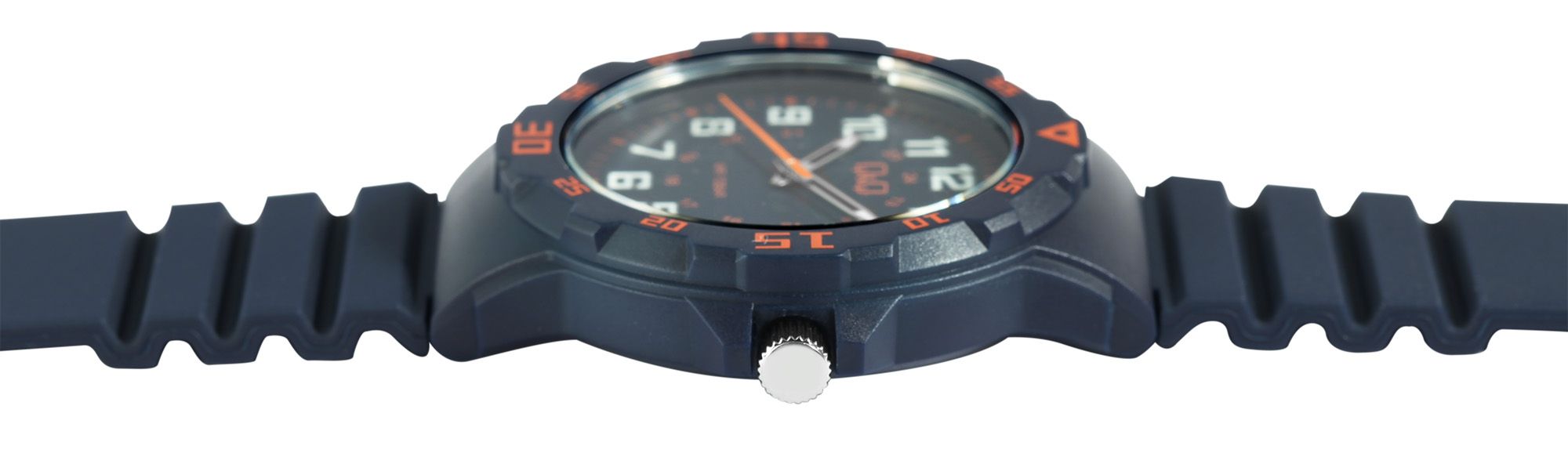 Produktinformationen "Q&Q Herrenuhr mit Silikonarmband, Ø 43 mm, blau/ orange Details"