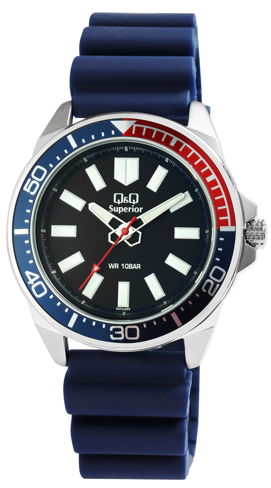 Produktinformationen "Q&Q Superior Herrenuhr mit Silikonarmband, Edelstahlgehäuse, 10 bar"