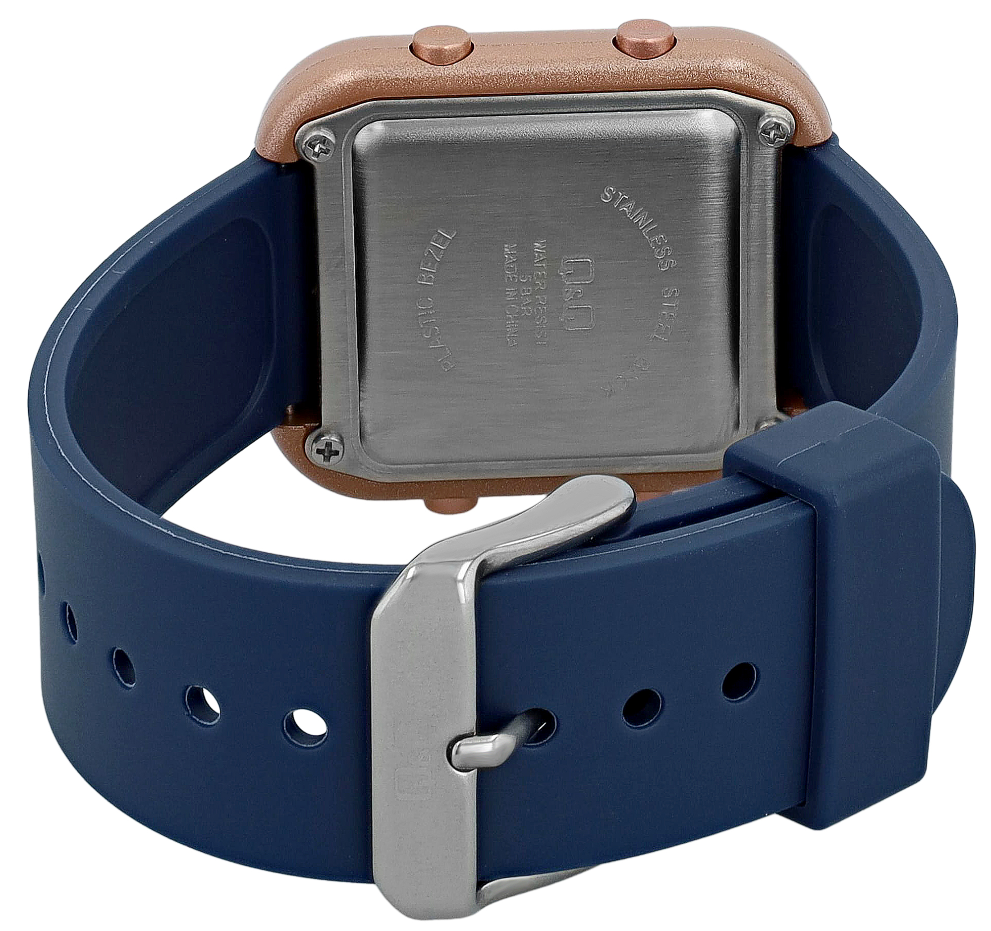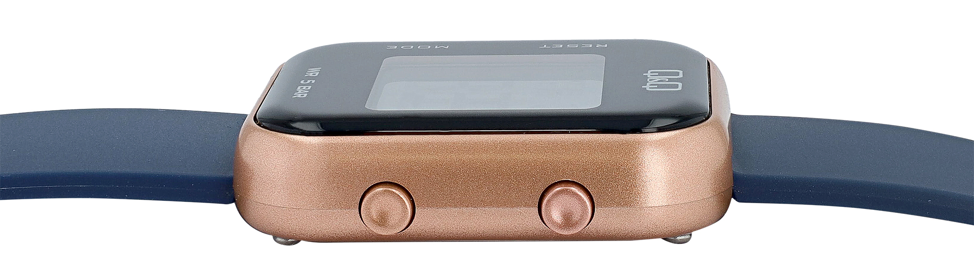 Produktinformationen "Q&Q Unisex Digitaluhr, Kunststoff, Resinband, blau/roségoldfarben, 5 ATM, 40 x 34 mm"