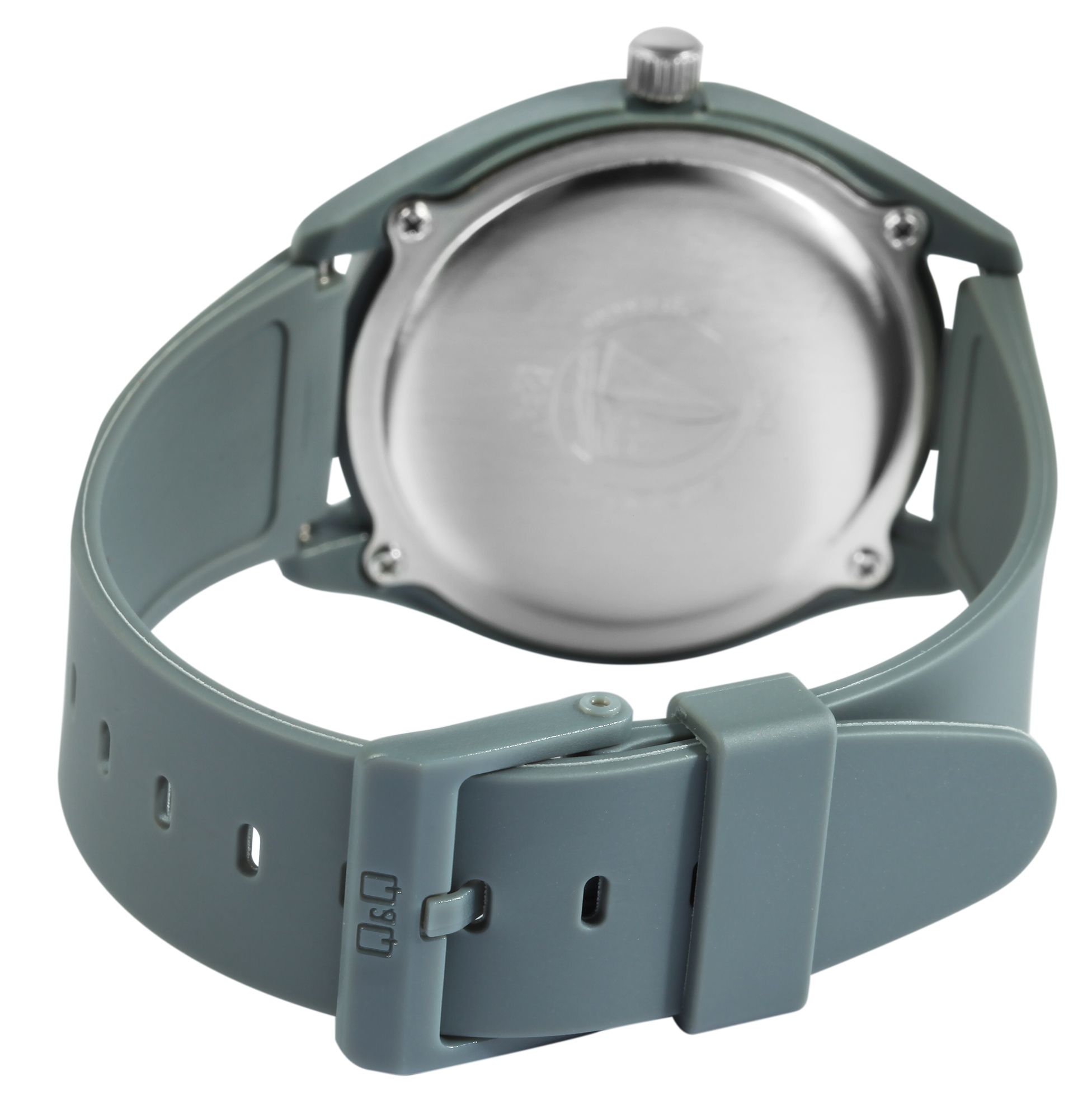 Die analoge 3-Zeiger Unisexarmbanduhr der Marke Q&Q - by Citizen Watch Co. LTD verfügt über ein hochwertiges und ganggenaues Quarzuhrwerk. Das graue Silikonarmband ist am Anstoß 21 mm breit und lässt sich mit einer grauen Dornschließe öffnen und schließen. Die Gesamtlänge der Uhr beträgt 25 cm. Das graue Kunststoffgehäuse mit Mineralglas hat eine Abmessung von 41 mm im Durchmesser und einer Gehäusehöhe von 11 mm. Der Gehäuseboden ist aus Edelstahl gefertigt und mit vier Edelstahlschrauben am Gehäuse befestigt. Die Uhrzeit lässt sich durch das graue Zifferblatt mit weißen Ziffern im arabischen Stil ideal ablesen. Des Weiteren bietet die Armbanduhr durch das weiche Silikonarmband einen angenehmen Tragekomfort und lässt sich durch das sportliche Design wunderbar kombinieren. Zudem erweist sich das Material als besonders hautfreundlich und eignet sich dadurch ideal für Allergiker.