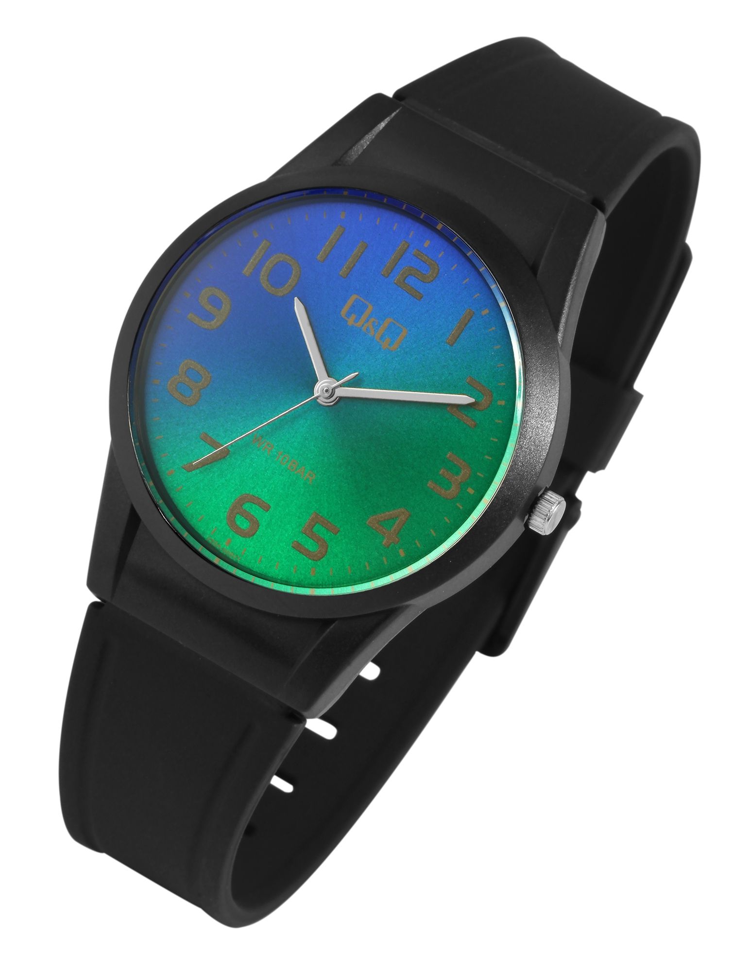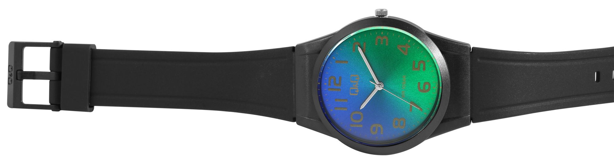 Produktinformationen "Q&Q Unisexuhr mit Silikonarmband, 10 Bar, schwarz, ZB grün/blau"