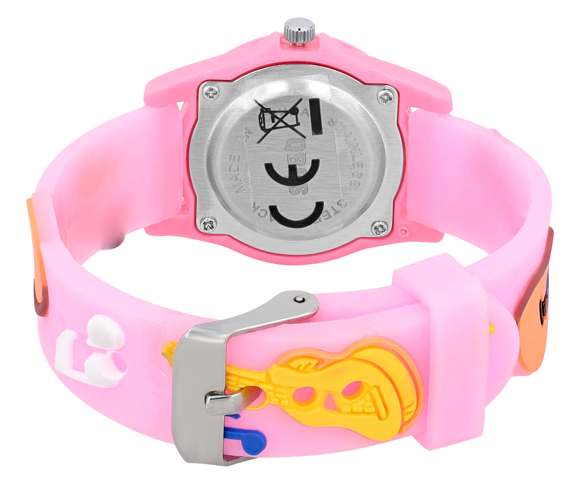 Produktinformationen "Qbos Kinderuhr mit Silikonband, bunt, Motiv Gitarre, Ø 28 mm, hellrosa"