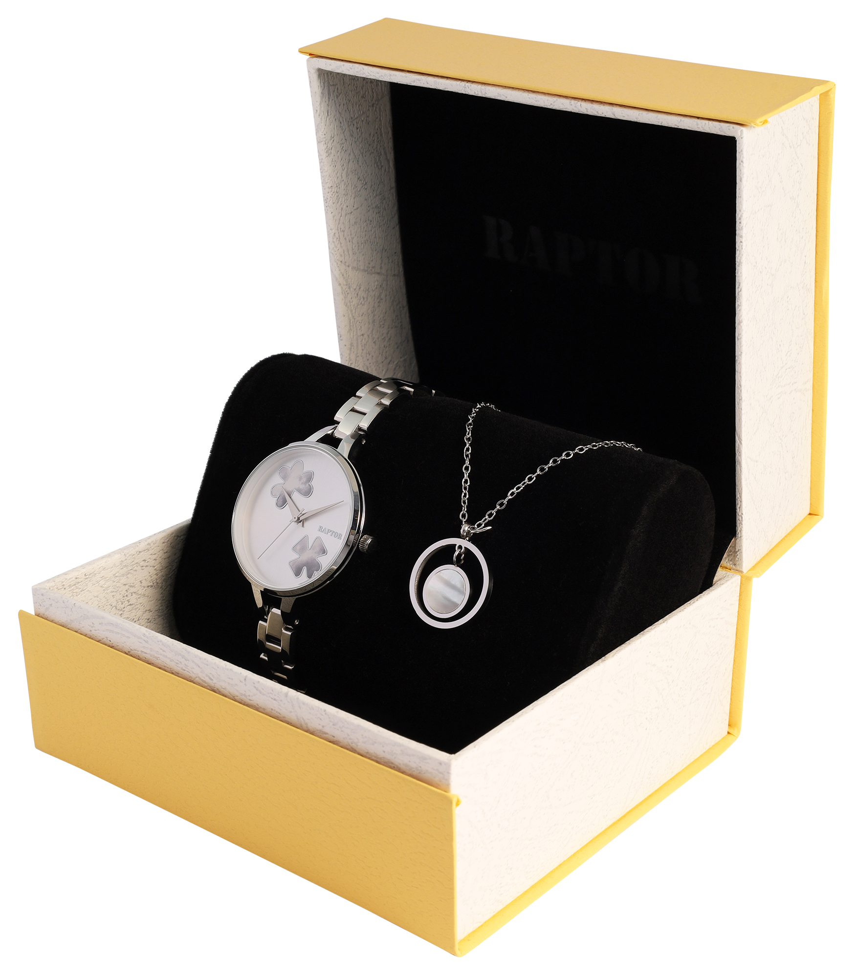 Produktinformationen "Raptor Damen Geschenkset - Damenuhr Edelstahlband mit Edelstahlkette 45 cm & Anhänger"
