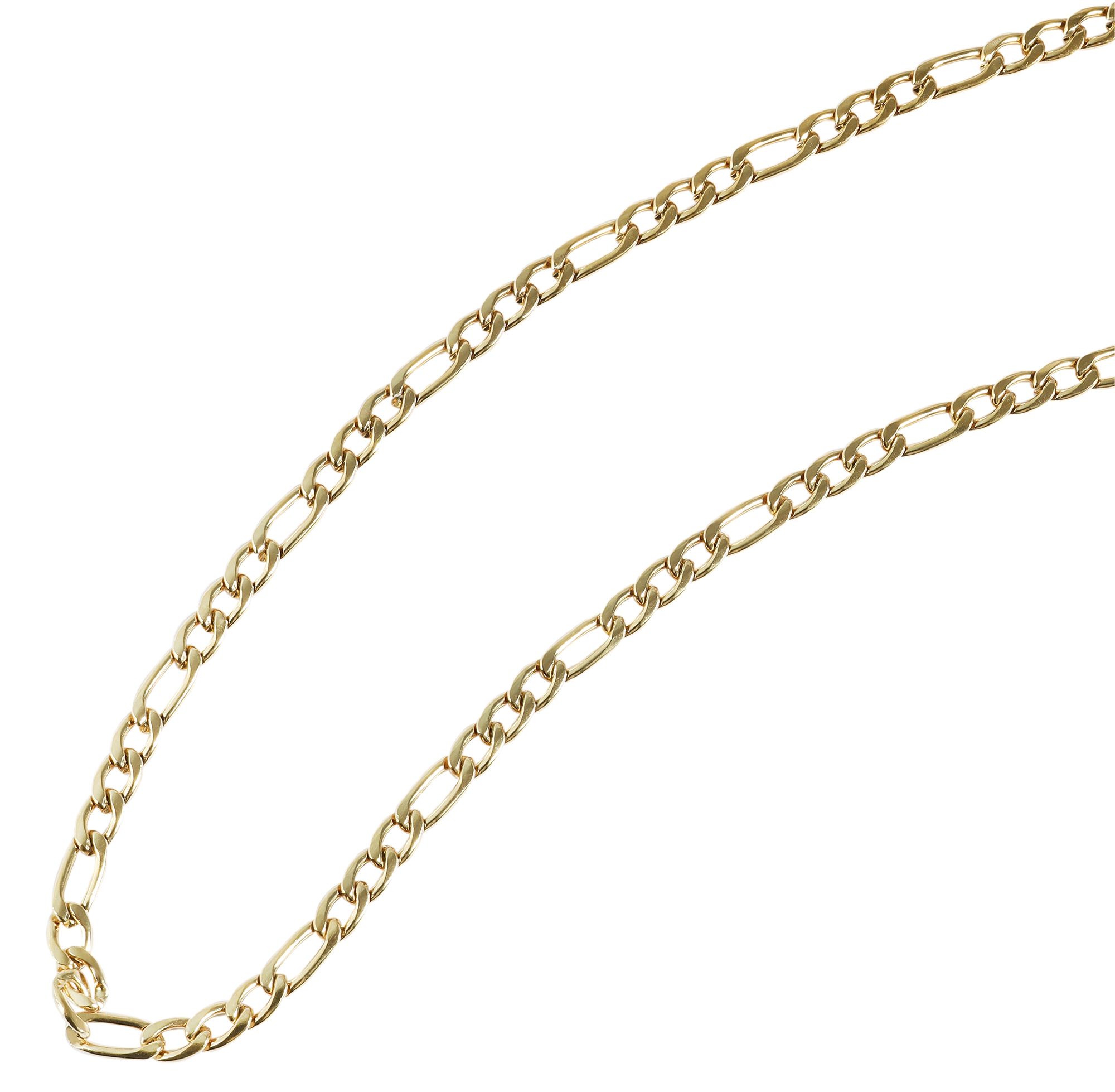 Die goldfarbene Halskette der Marke Raptor ist aus Edelstahl im Figaromuster gefertigt. Ähnlich wie bei der Panzerkette sorgen die flachen Elemente für einen angenehmen Tragekomfort. Die Kette ist in verschiedenen Längen erhältlich, hat eine Breite von 4 mm und eine Stärke von 1,5 mm. Öffnen und schließen lässt sich die schlichte Schmuckkette mit einem Karabinerhaken, der ebenfalls aus Edelstahl gefertigt ist. Zusätzlich ist an das eine Ende der Kette ist zusätzlich eine 5 cm lange Verlängerungskette angebracht, die es ermöglicht, die Länge der Kette um bis zu 5 cm zu variieren und sie so an jedes Outfit anpassen zu können. Durch das robuste Material und die hochwertige Verarbeitung verspricht die Halskette eine lange Lebensdauer.