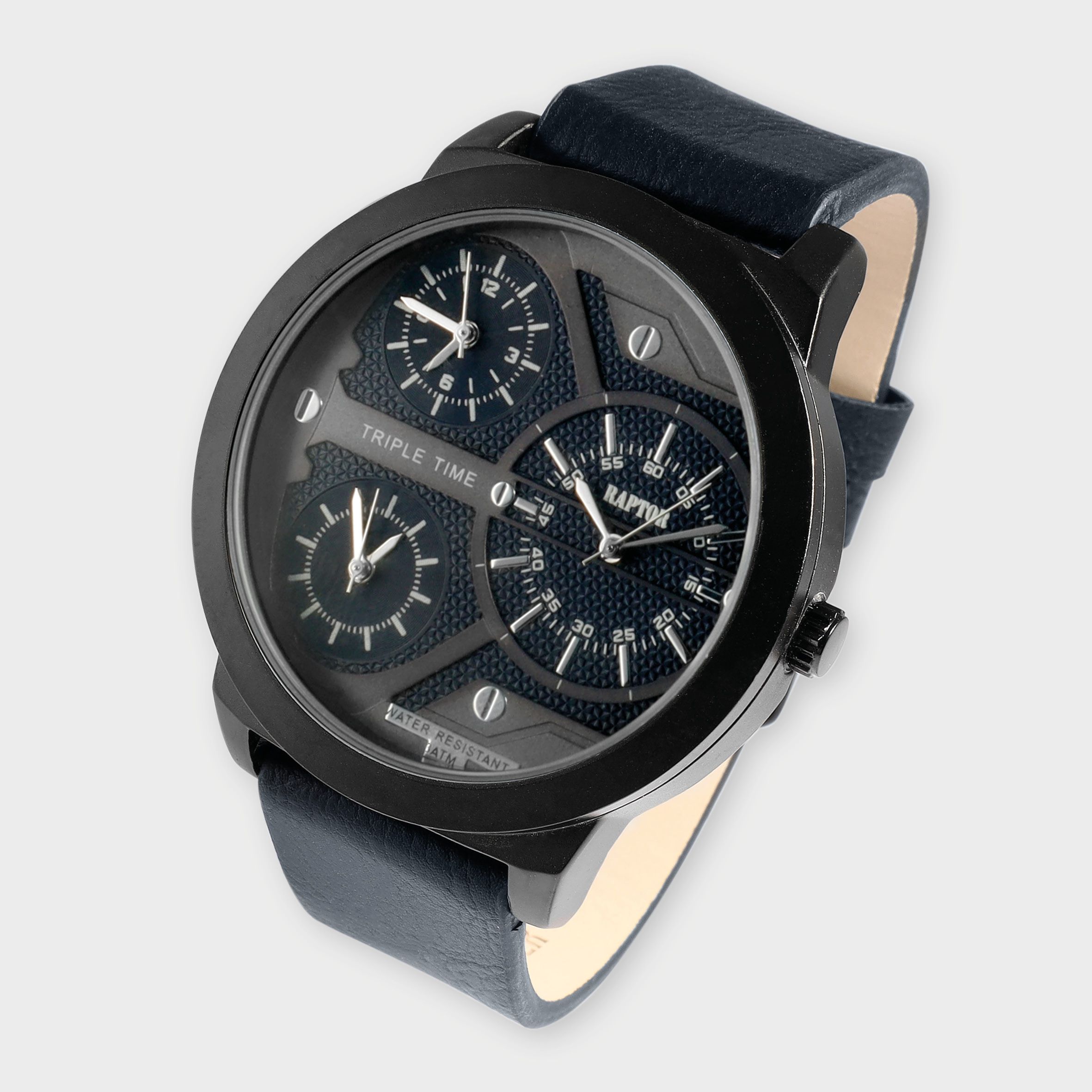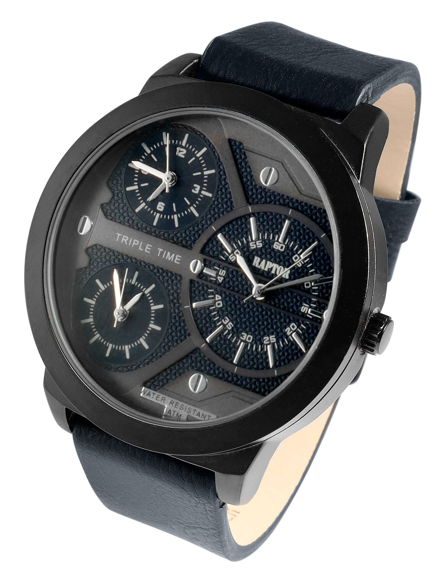 Produktinformationen "Raptor Herrenuhr "Silony" mit Lederband, 3 Uhrwerke"