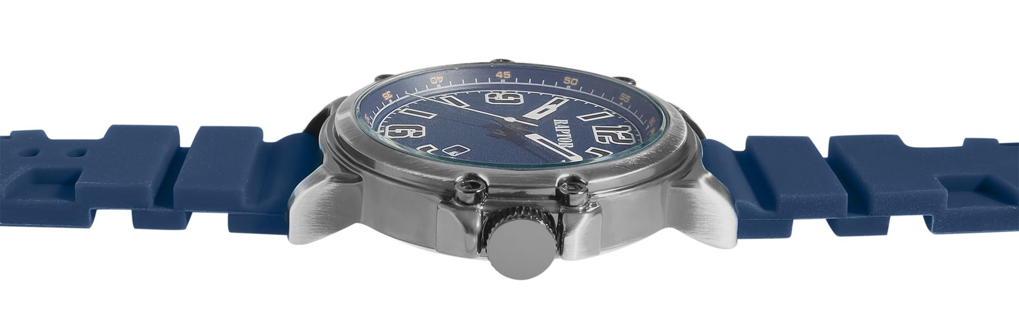 Das Gehäuse, gefertigt aus hochwertigem Metall, ist ein markantes Zeichen von Robustheit und Eleganz. Der Gehäuseboden aus Edelstahl gibt dieser Uhr zusätzliche Stabilität und gewährleistet eine lange Lebensdauer. Das Silikonarmband der Raptor Herrenuhr ist ein Tribut an die Sportlichkeit und den aktiven Lebensstil. Es schmiegt sich angenehm dem Handgelenk an und verleiht der Uhr einen zeitgemäßen Look. Die Dornschließe sorgt für eine sichere Befestigung und garantiert einen unkomplizierten Tragekomfort.