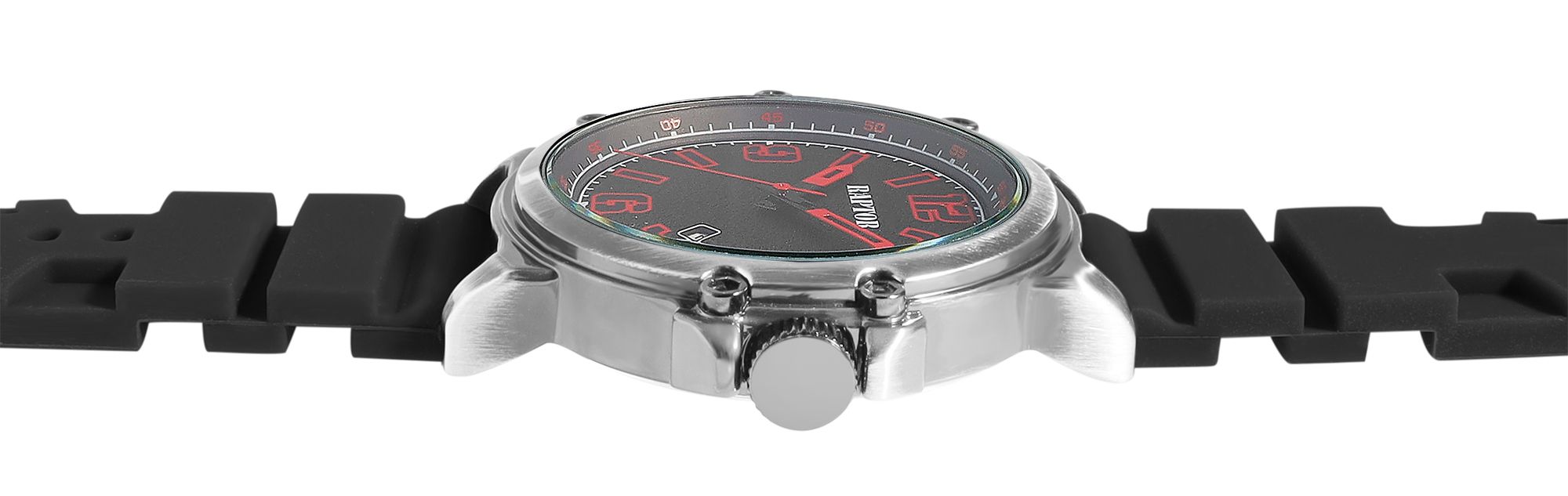 Das Gehäuse, gefertigt aus hochwertigem Metall, ist ein markantes Zeichen von Robustheit und Eleganz. Der Gehäuseboden aus Edelstahl gibt dieser Uhr zusätzliche Stabilität und gewährleistet eine lange Lebensdauer. Das Silikonarmband der Raptor Herrenuhr ist ein Tribut an die Sportlichkeit und den aktiven Lebensstil. Es schmiegt sich angenehm dem Handgelenk an und verleiht der Uhr einen zeitgemäßen Look. Die Dornschließe sorgt für eine sichere Befestigung und garantiert einen unkomplizierten Tragekomfort.