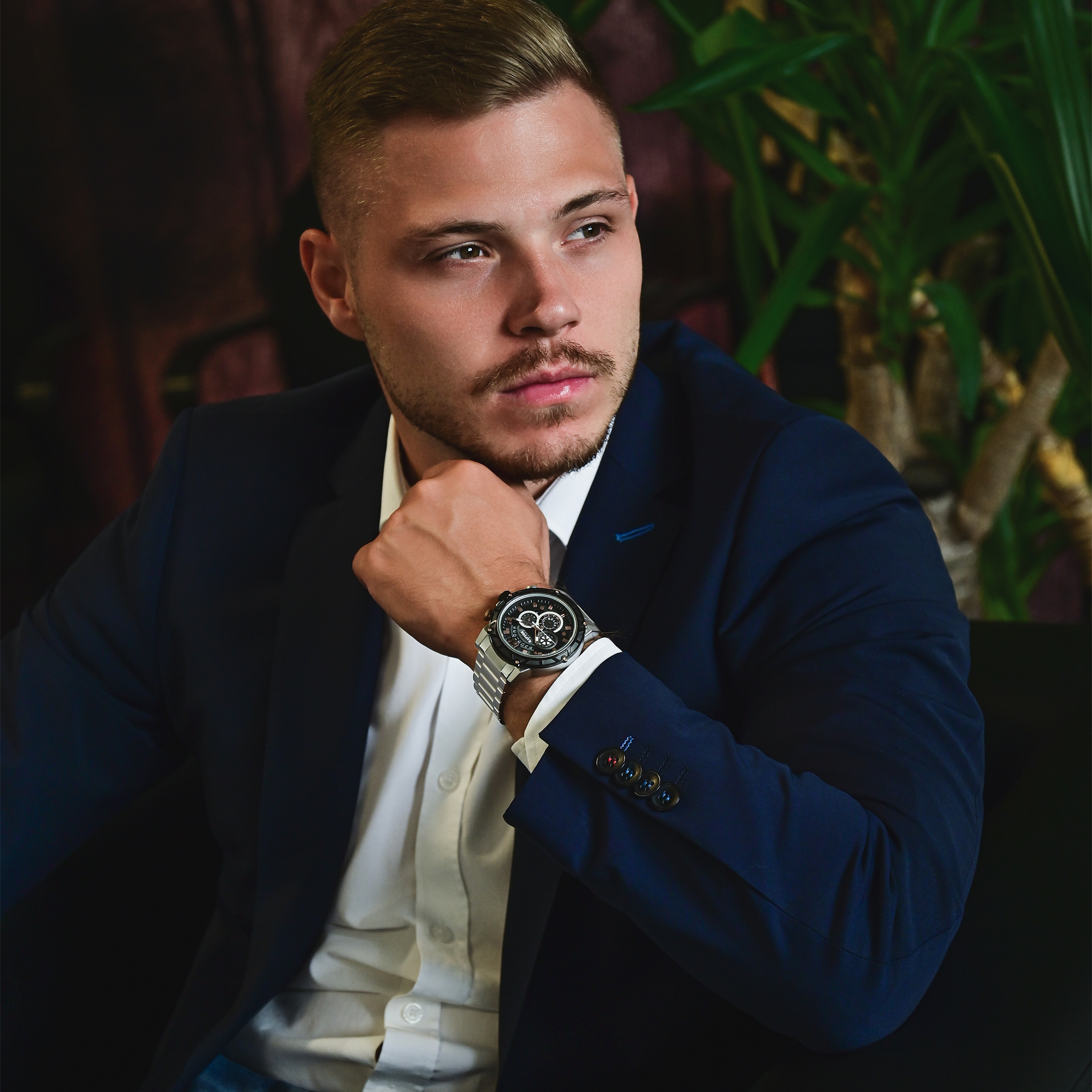 Der Raptor Limited Chronograph "Rakan" überzeugt nicht nur durch sein markantes Design, sondern auch durch seine Funktionalität. Mit einem Chronographen, der Datums- und Wochentagsanzeige kombiniert, wird diese Uhr zu einem unverzichtbaren Begleiter. Das Herzstück dieser Herrenuhr ist das hochwertige Quarzuhrwerk, das nicht nur für unübertroffene Genauigkeit steht, sondern auch für Zuverlässigkeit und Langlebigkeit sorgt. Die analoge Anzeige mit drei Zeigern und Strichindexeinteilung, inklusive arabischer Ziffer auf der Zwölf, verleiht dem Chronographen eine klare und leicht ablesbare Ästhetik.