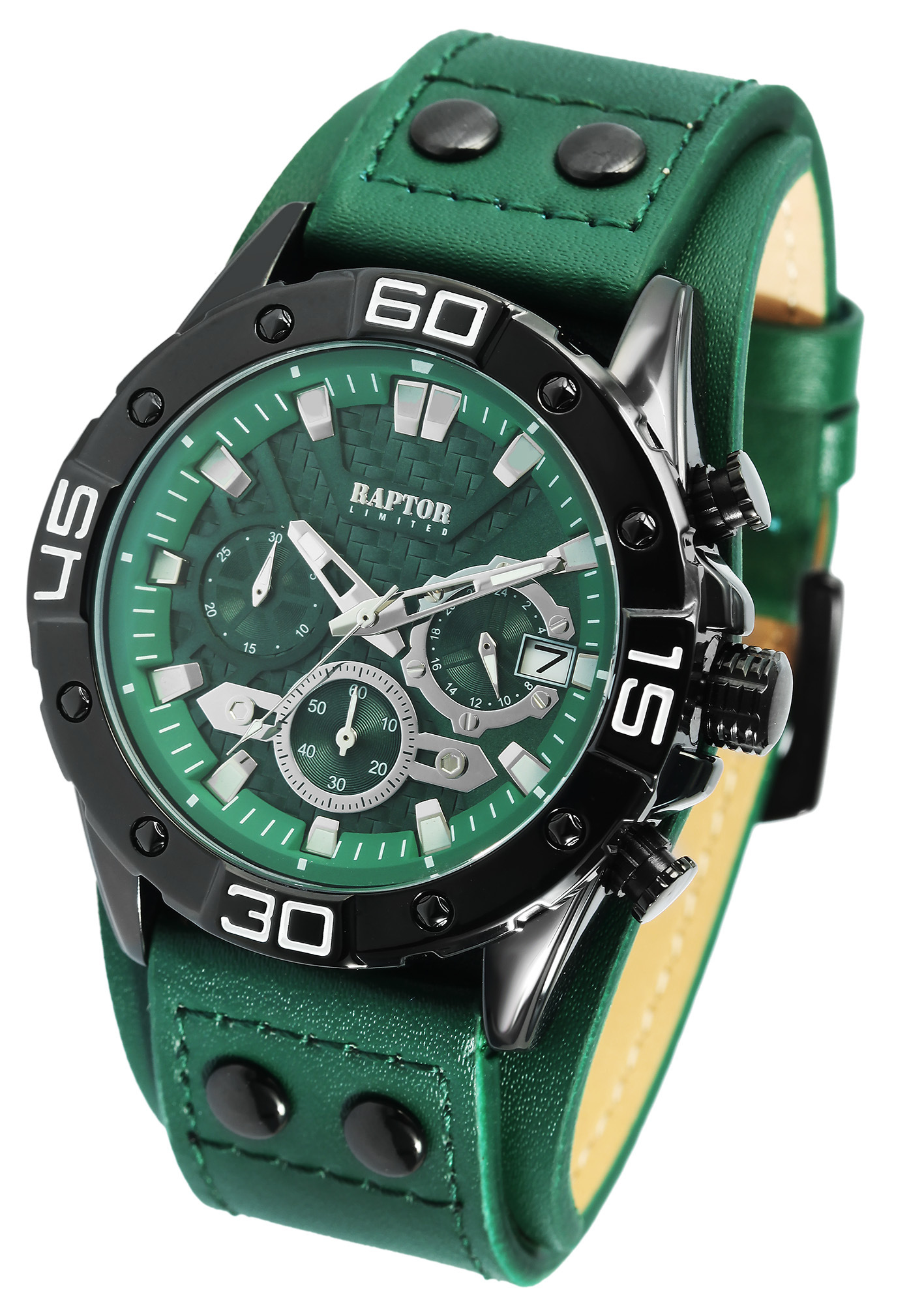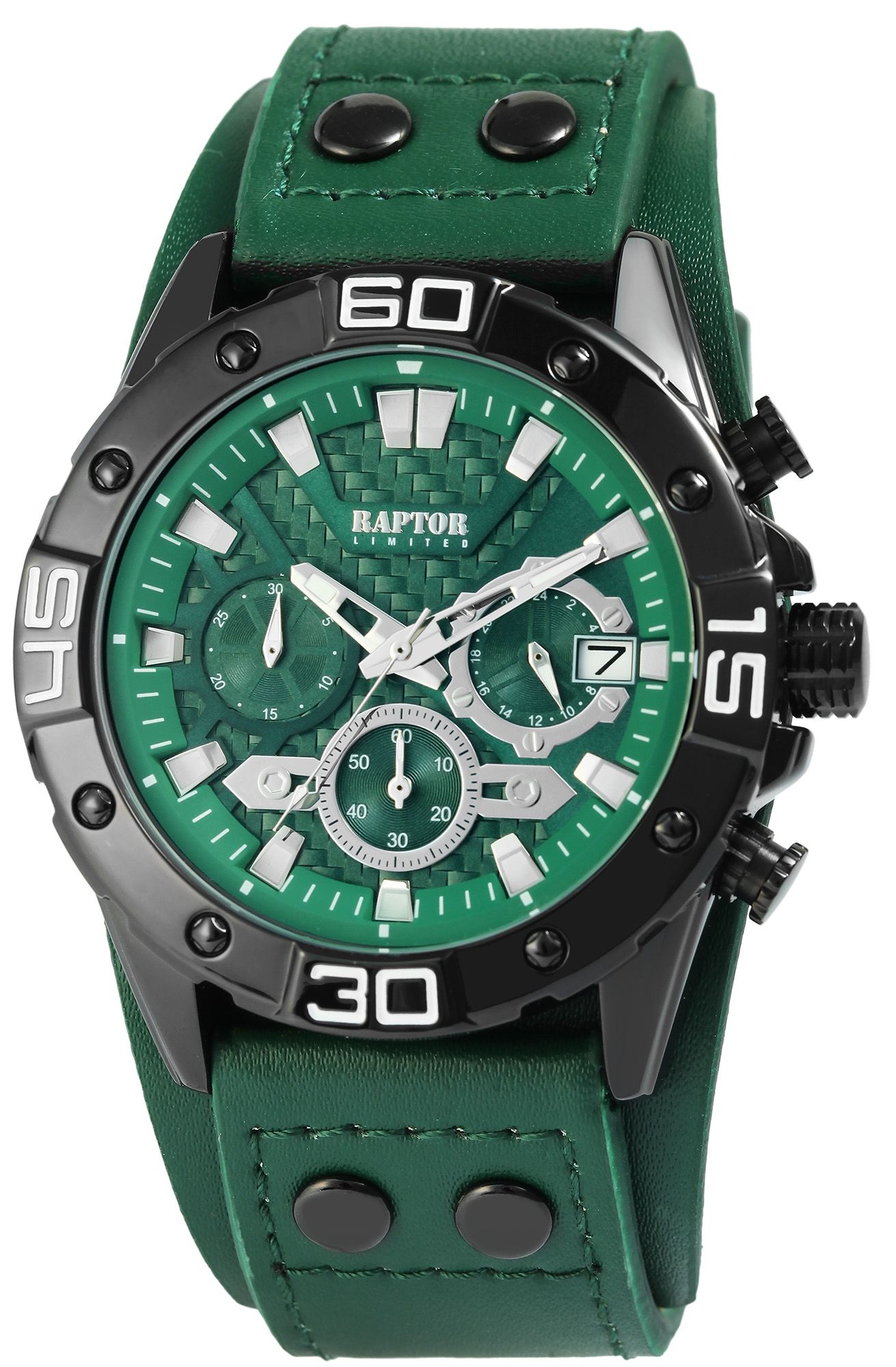 Produktinformationen "Raptor Limited Chronograph mit Echtlederband, grün"