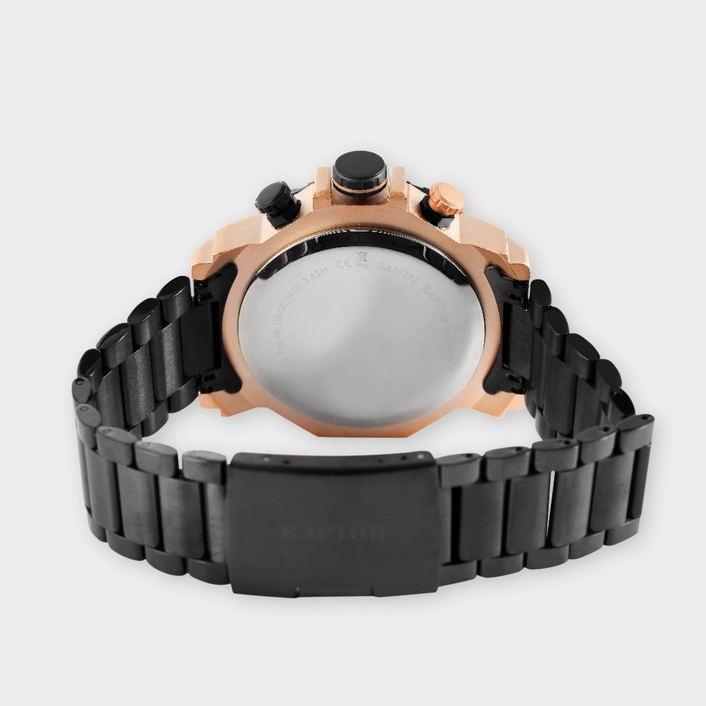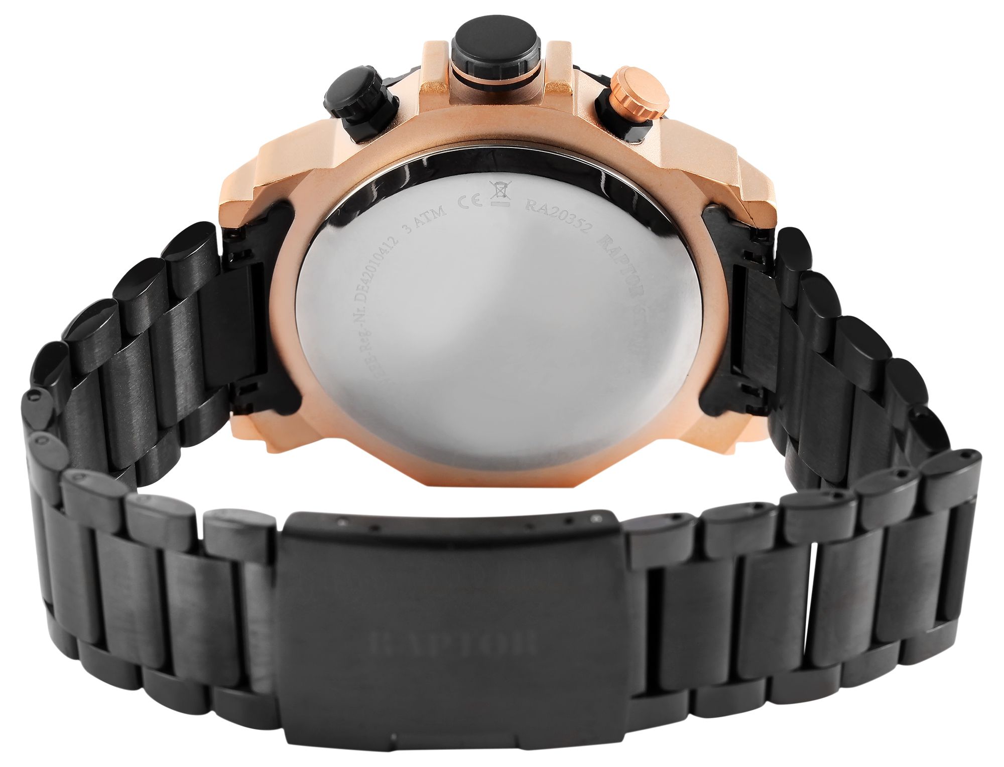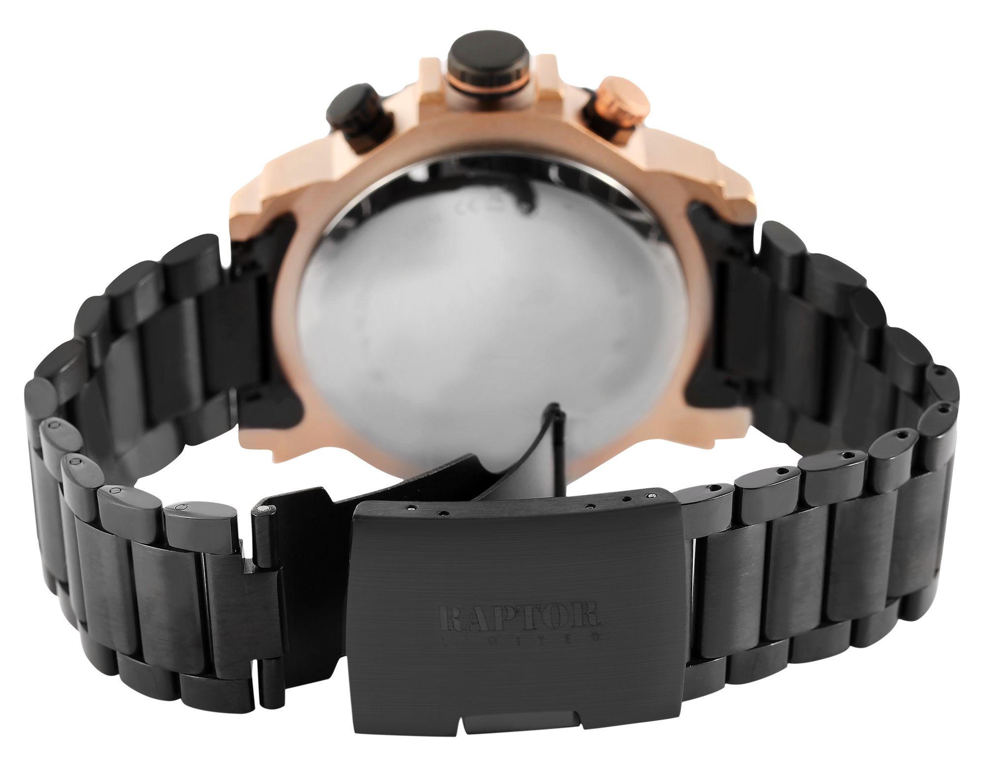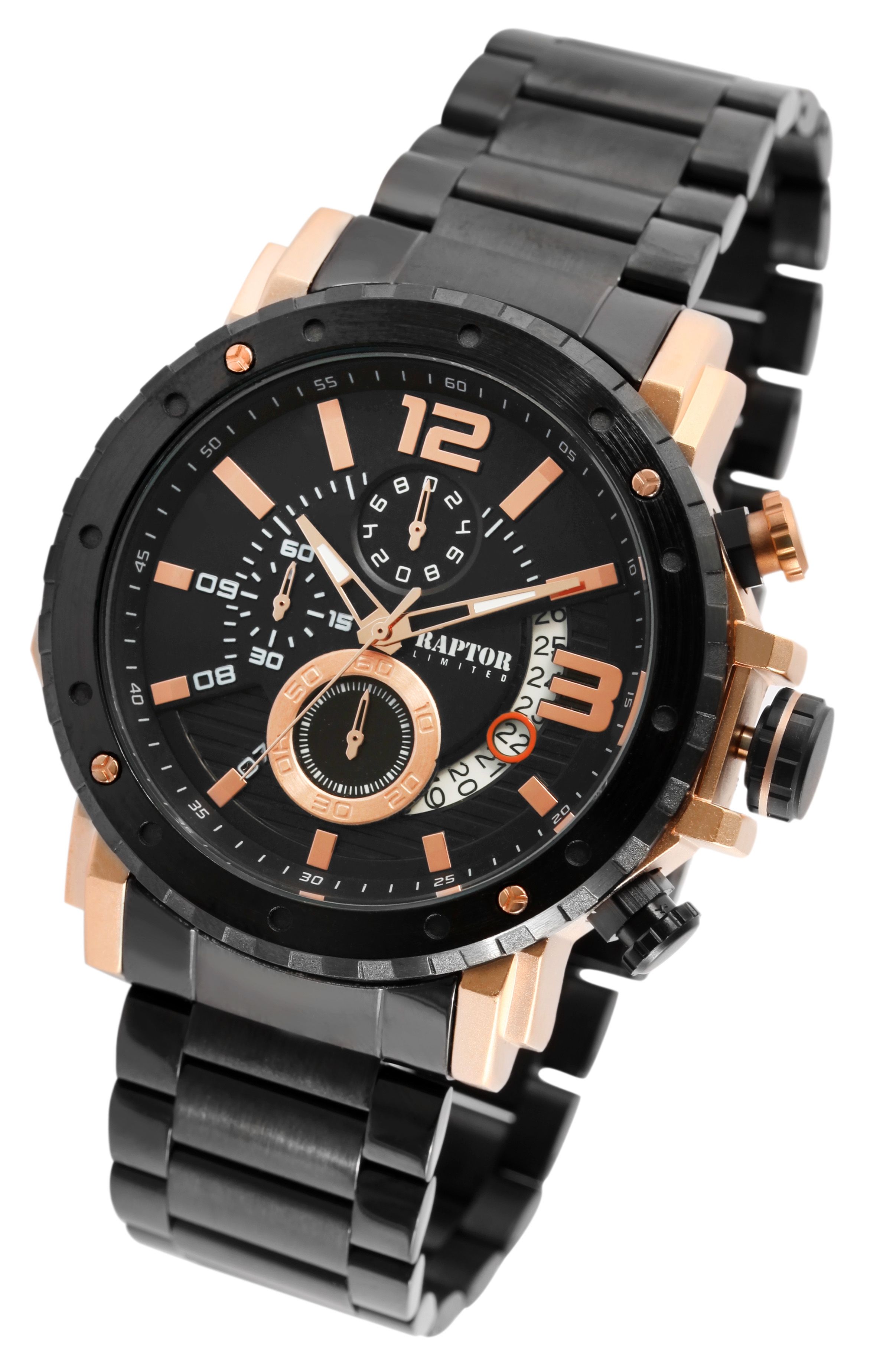 Produktinformationen "Raptor Limited Herrenchronograph "Alan" mit Edelstahlarmband, schwarz/roségoldfarben"