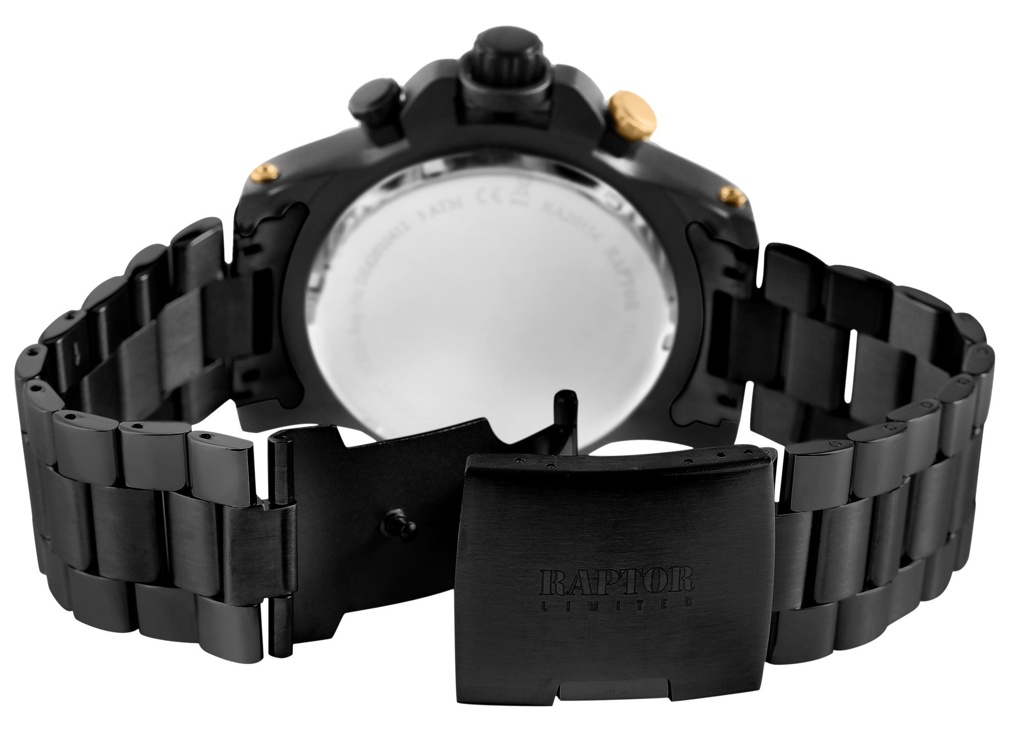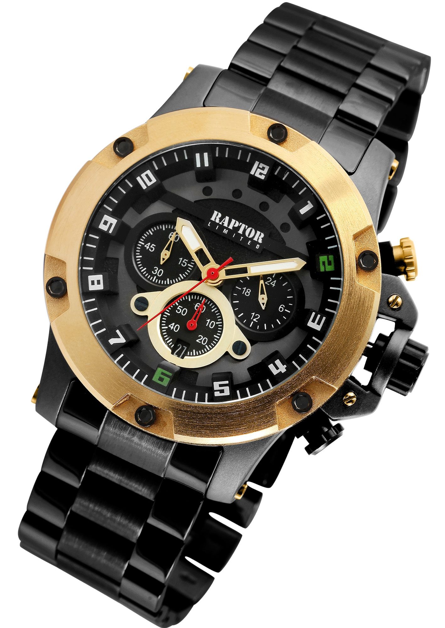 Produktinformationen "Raptor Limited Herrenchronograph "Soheib" mit Edelstahlarmband, schwarz/goldfarben"