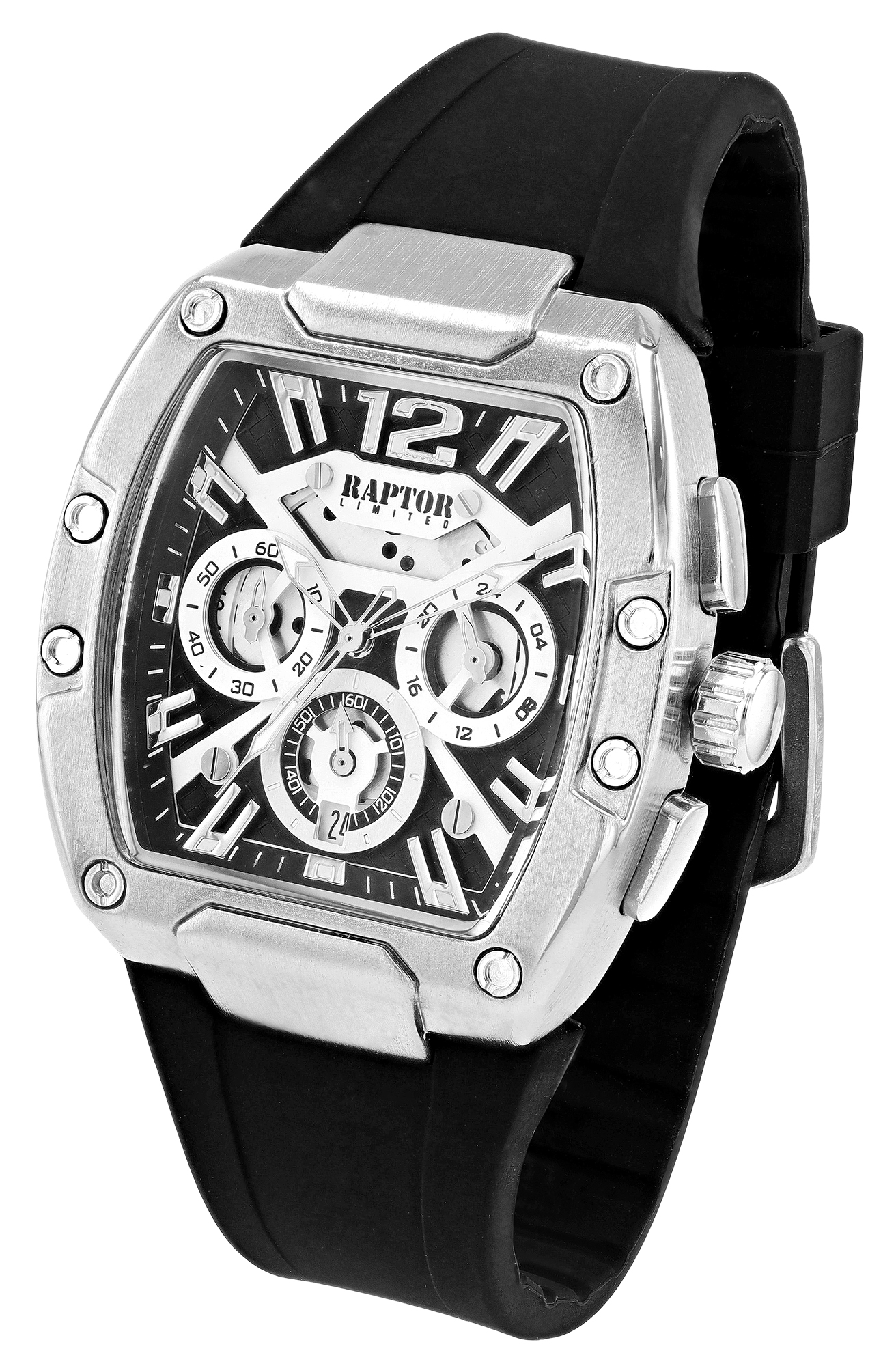 Produktinformationen "Raptor Limited Herrenuhr "Aldriel", Silikonarmband, Chronograph, schwarz/ silberfarben"