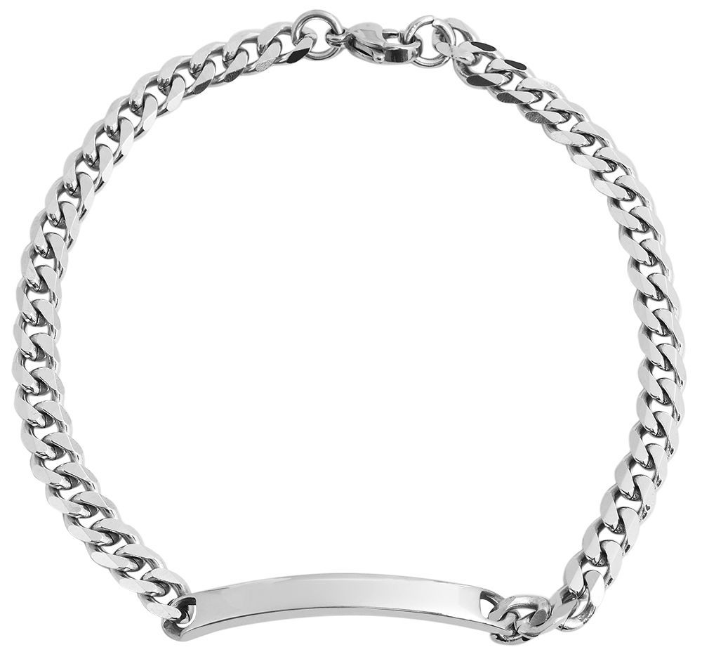 Das silberfarbene Panzerarmband der Marke Raptor ist aus Edelstahl gefertigt und fasst mittig eine 3,5 cm lange Gravurplatte. Die Maße ergeben sich aus einer Gesamtlänge von 22,5 cm, einer Breite von 0,6 cm und einer Materialstärke von 2,5 mm. Die Gravurplatte ist 2 mm stark und ebenfalls 0,6 cm breit. Öffnen und schließen lässt sich das massive Armband mit einem silberfarbenen Karabinerhaken, der ebenfalls aus Edelstahl gefertigt ist. Die Oberfläche des auffälligen Schmuckstückes ist hochglanzpoliert. Die Gravurplatte, oder Identplatte, ist dazu geeignet mit Gravuren versehen zu werden. Ein personalisiertes Schmuckstück eignet sich hervorragend als Geschenk.