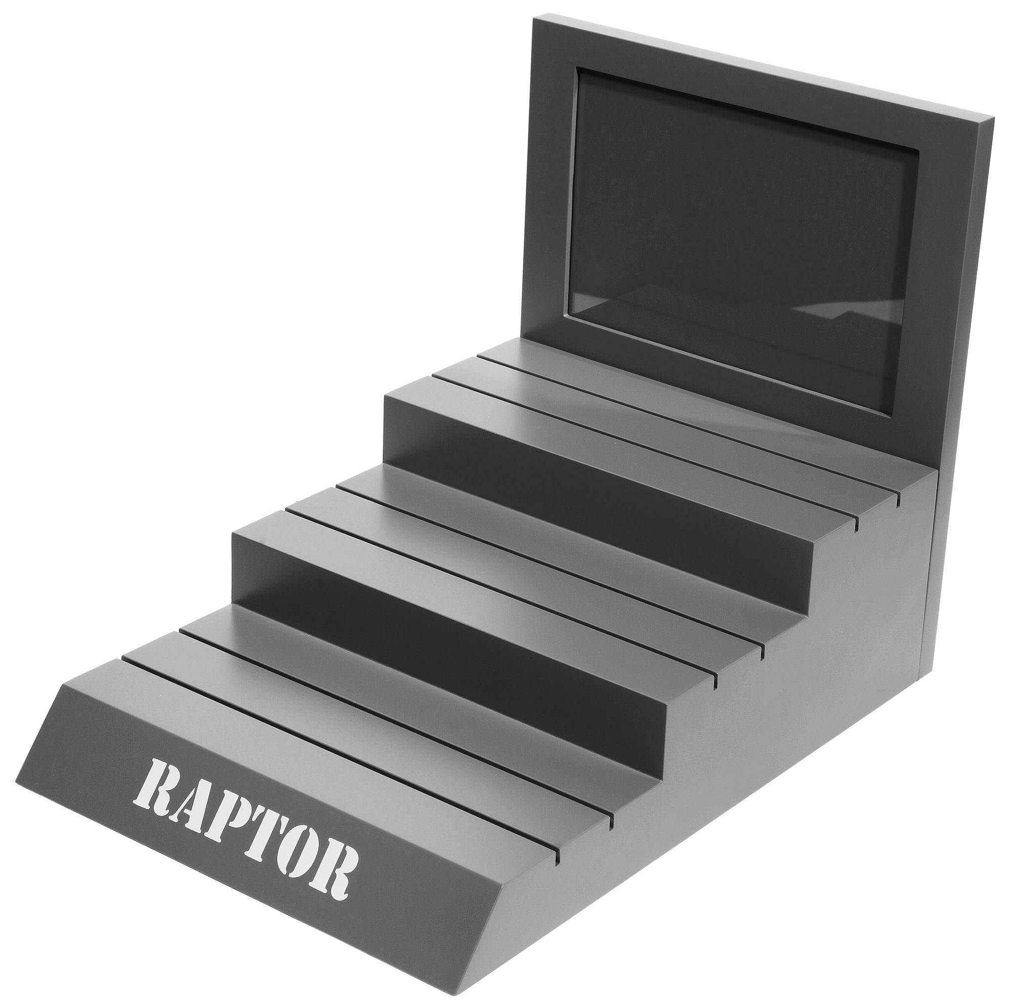 Produktinformationen "Raptor Uhrendisplay, grau mit Uhrenaufsteller, 27 cm x 39 cm x 30 cm"