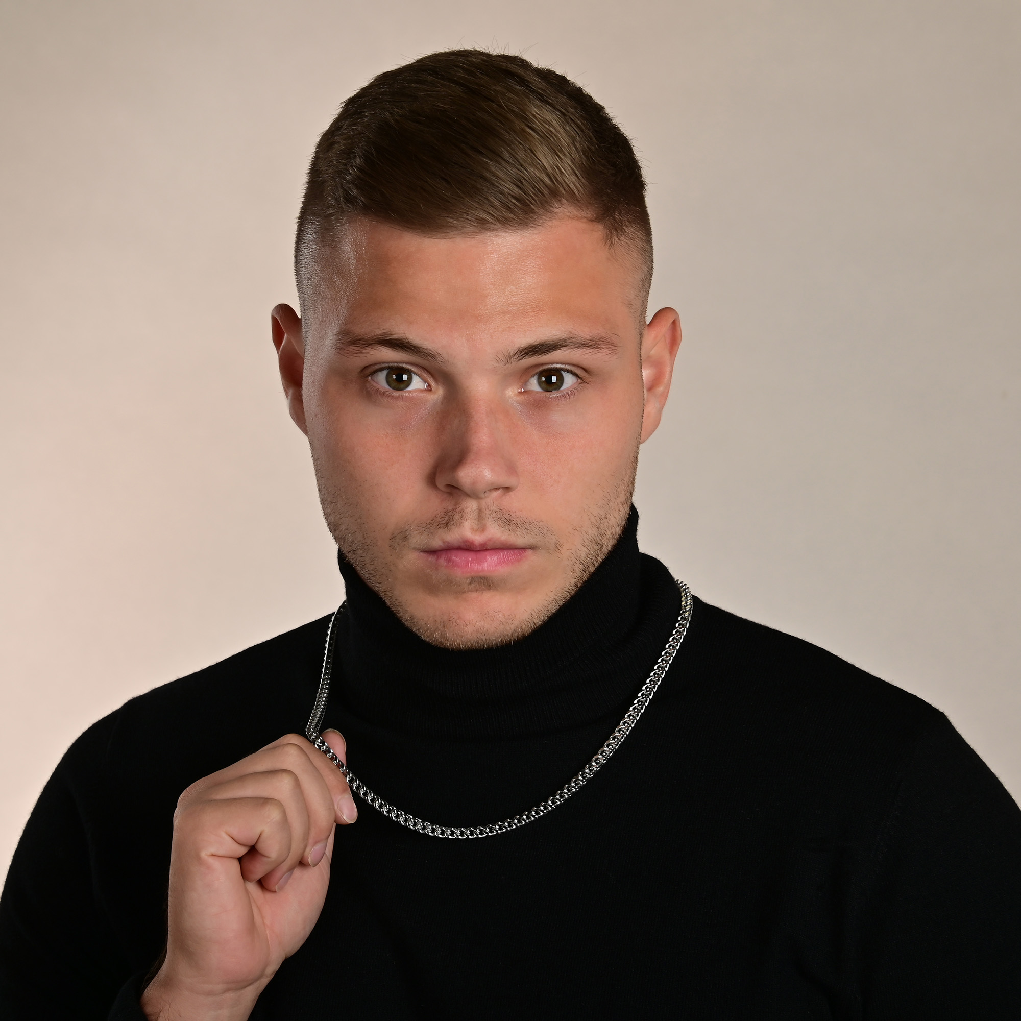 Die Edelstahlkette der Marke Raptor ist im Vierkant-Francokettenmuster gefertigt und ist in verschiedenen Längen erhältlich. Durch die Kettenstärke von 5 mm erhält die Halskette ihren maskulinen und prunkvollen Look. Diese Kette besteht aus einer Reihe eng verbundener V-förmigen Elementen, die für einen hohen Tragekomfort sorgen und das Aussehen so massiv werden lassen. Öffnen und schließen lässt sich die Halskette mit einem silberfarbenen Karabinerhaken, der ebenfalls aus Edelstahl gefertigt ist. Mit diesem Schmuckstück erhalten Sie ein zeitloses und robustes Accessoire, welches Sie sowohl mit, aber auch ohne Kettenanhänger kombinieren können.