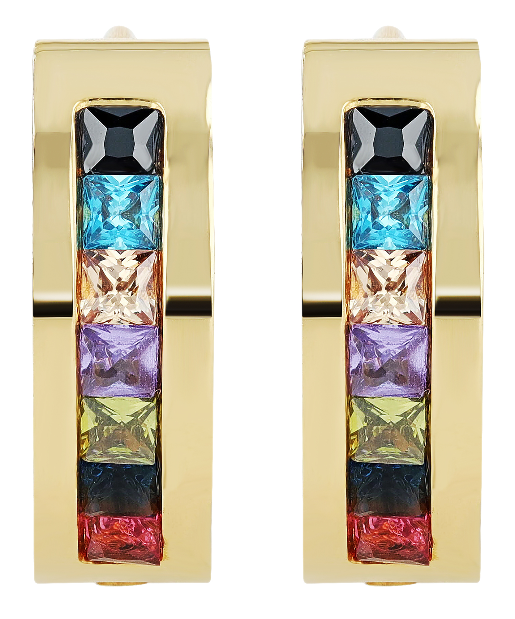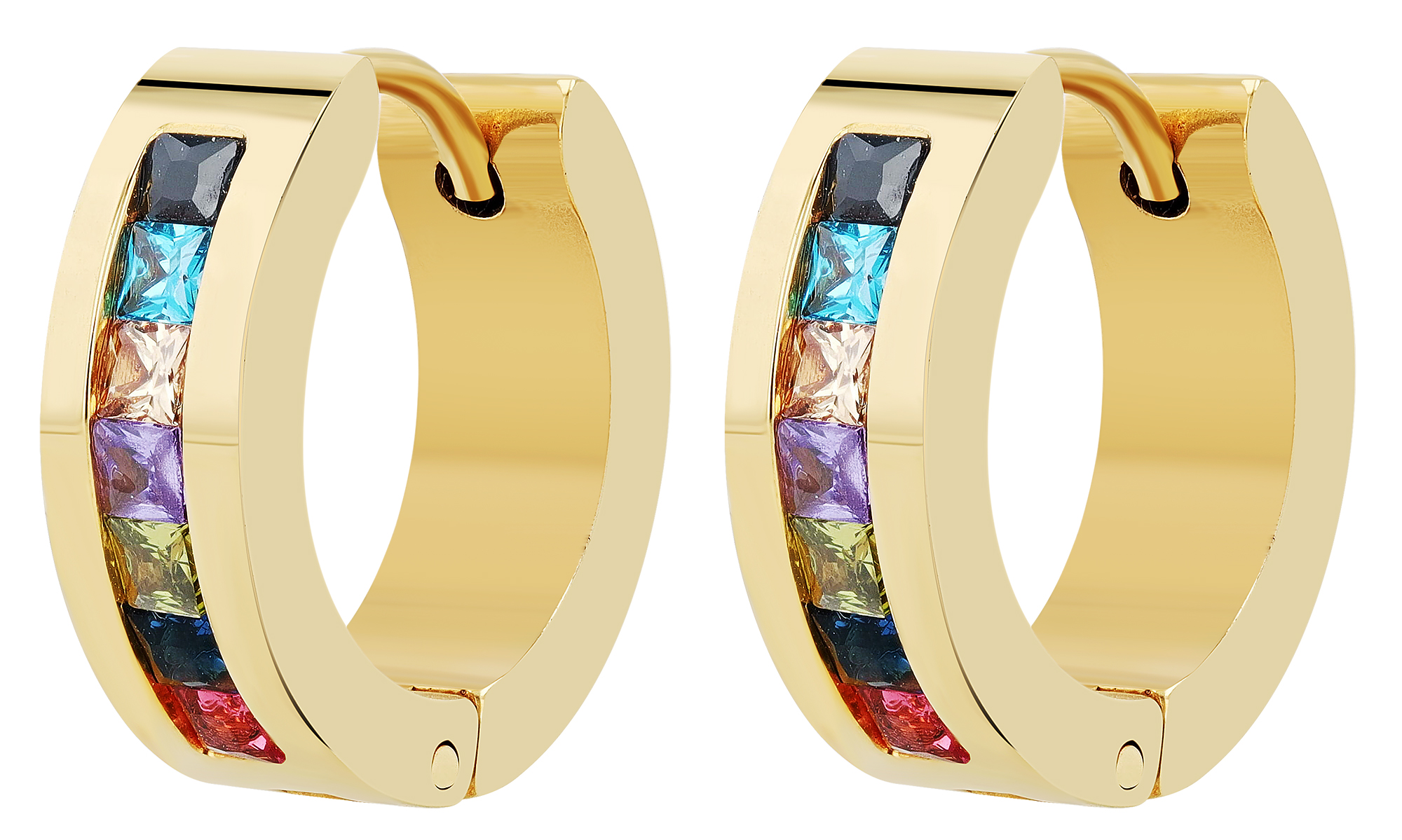 Diese Creolen sind aus hochwertigem Edelstahl gefertigt, was ihnen eine langlebige und robuste Qualität verleiht. Das elegante Design zeichnet sich durch 7 bunte Similiesteine, eingearbeitet in schlichtem Edelstahl, aus und gibt dem Schmuckstück eine besondere Note. Erhältlich in 2 Farbvarianten und mit einem Durchmesser von 12 mm, einer Breite von 5 mm und einer Stärke vom 3 mm sind die Creolen auffällig, jedoch auch im täglichem Gebrauch oder zu festlichen Anlässen bestens geeignet. Der Klappverschluss sorgt für einen sicheren Halt und ein einfaches An- und Ablegen.