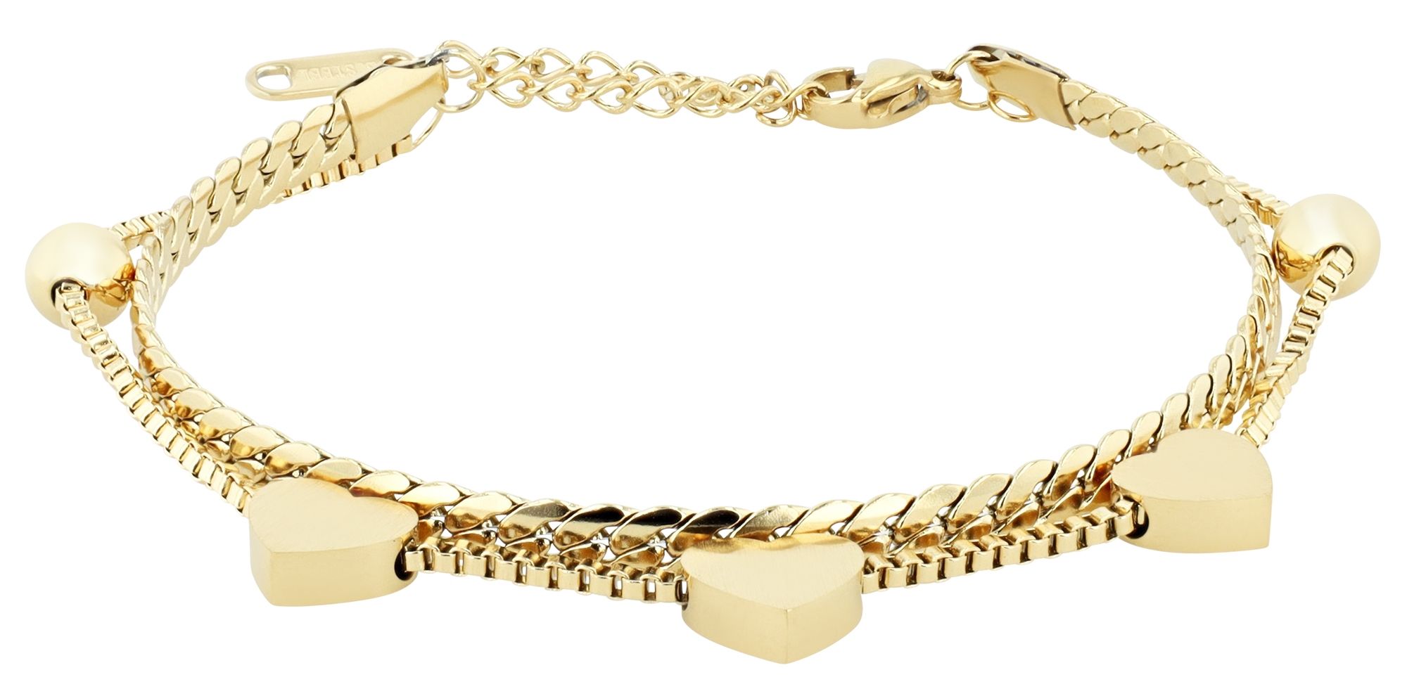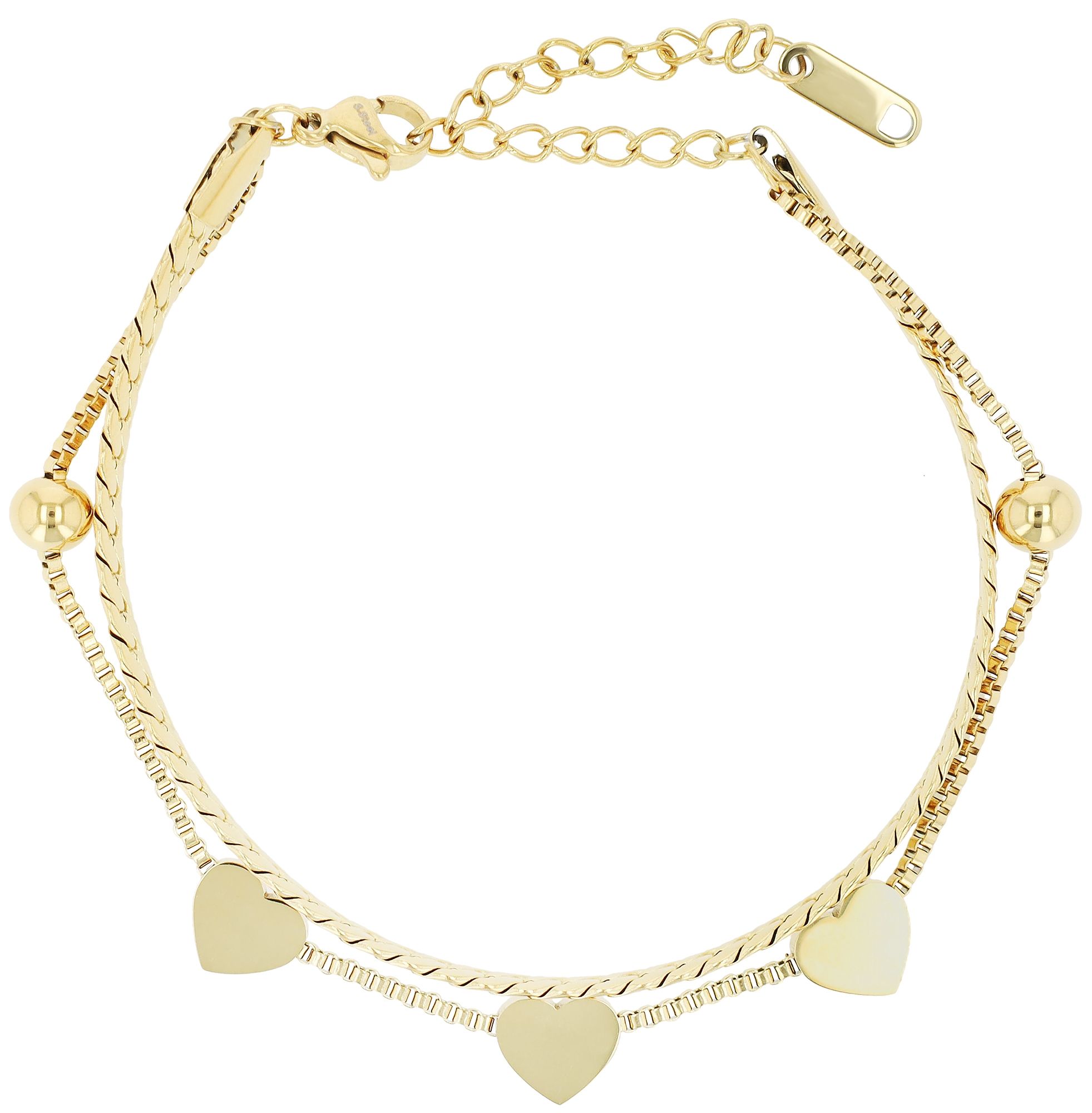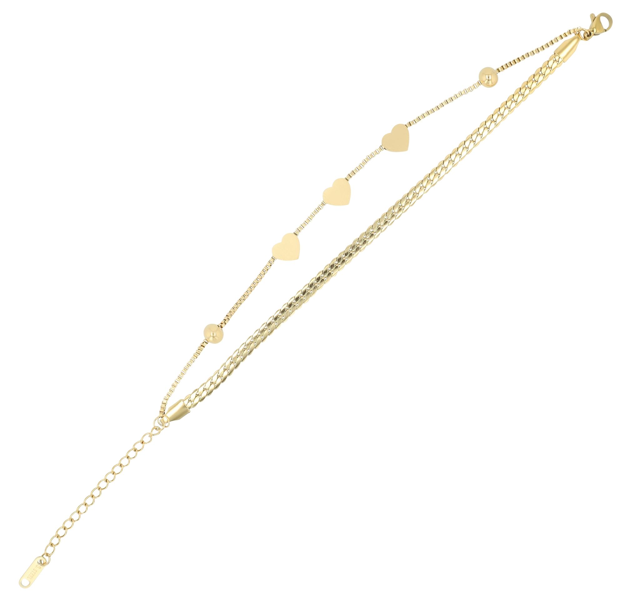 Produktinformationen ""Roxane" 2 Layering Armband, Edelstahl, Herzen & Kugeln, 17+5 cm, goldfarben"