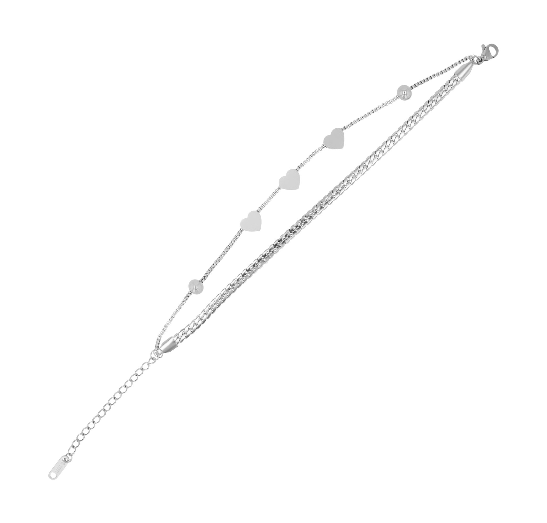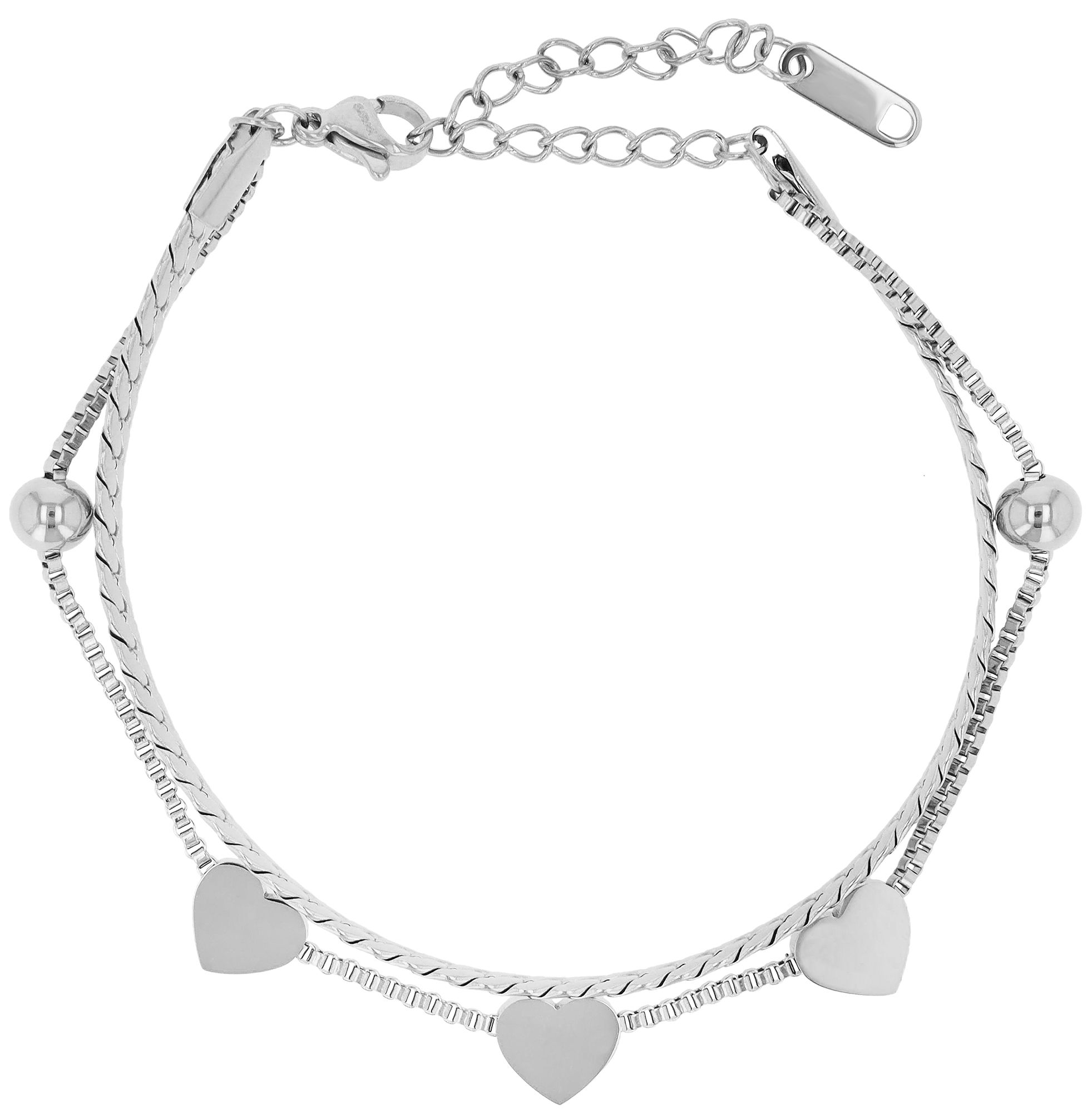 Produktinformationen ""Roxane" 2 Layering Armband, Edelstahl, Herzen & Kugeln, 17+5 cm, silberfarben"