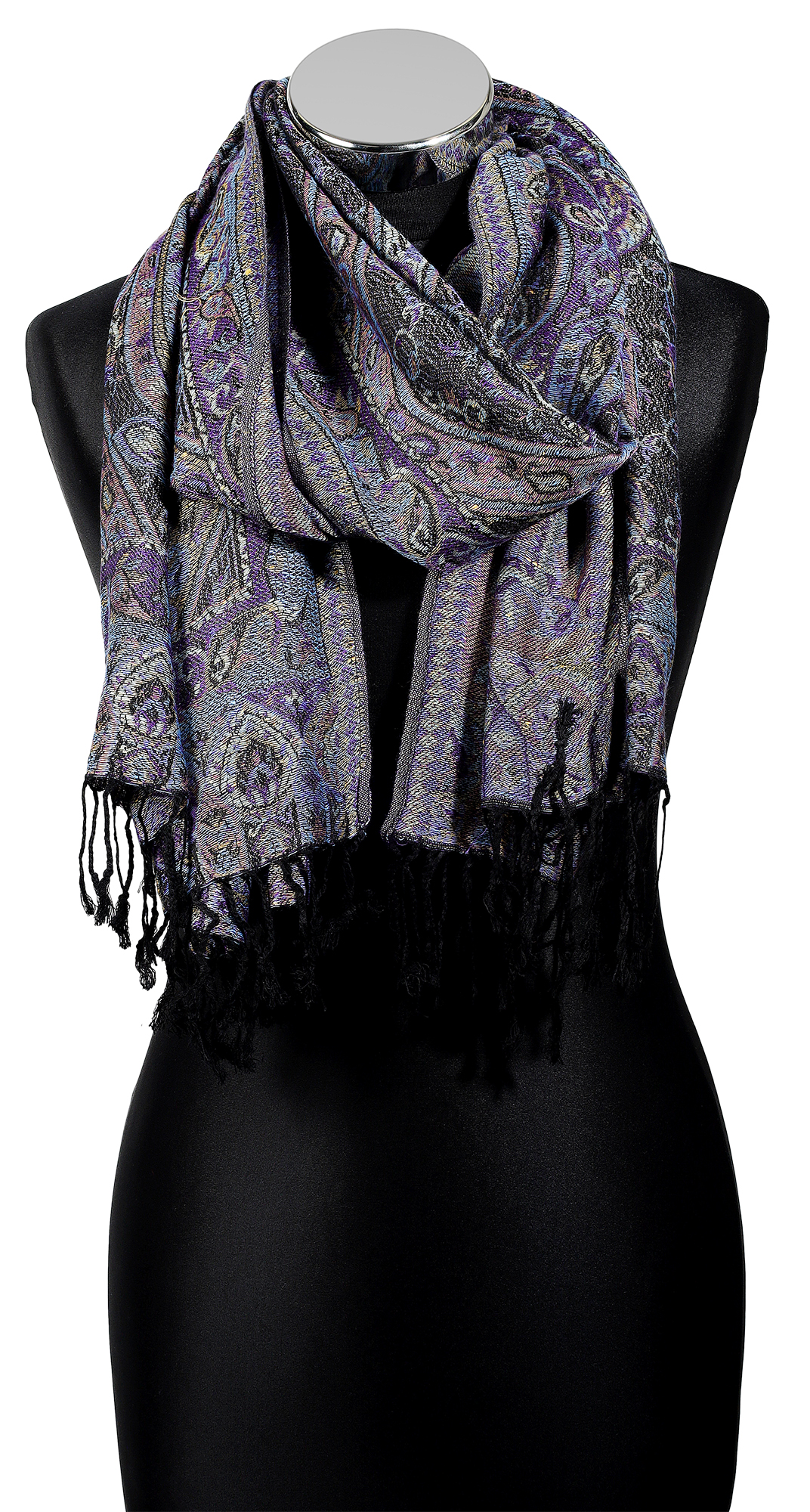 Produktinformationen "Schalpaket, 100% Viskose, VE 4, Paisley-Muster - grau/ lila"