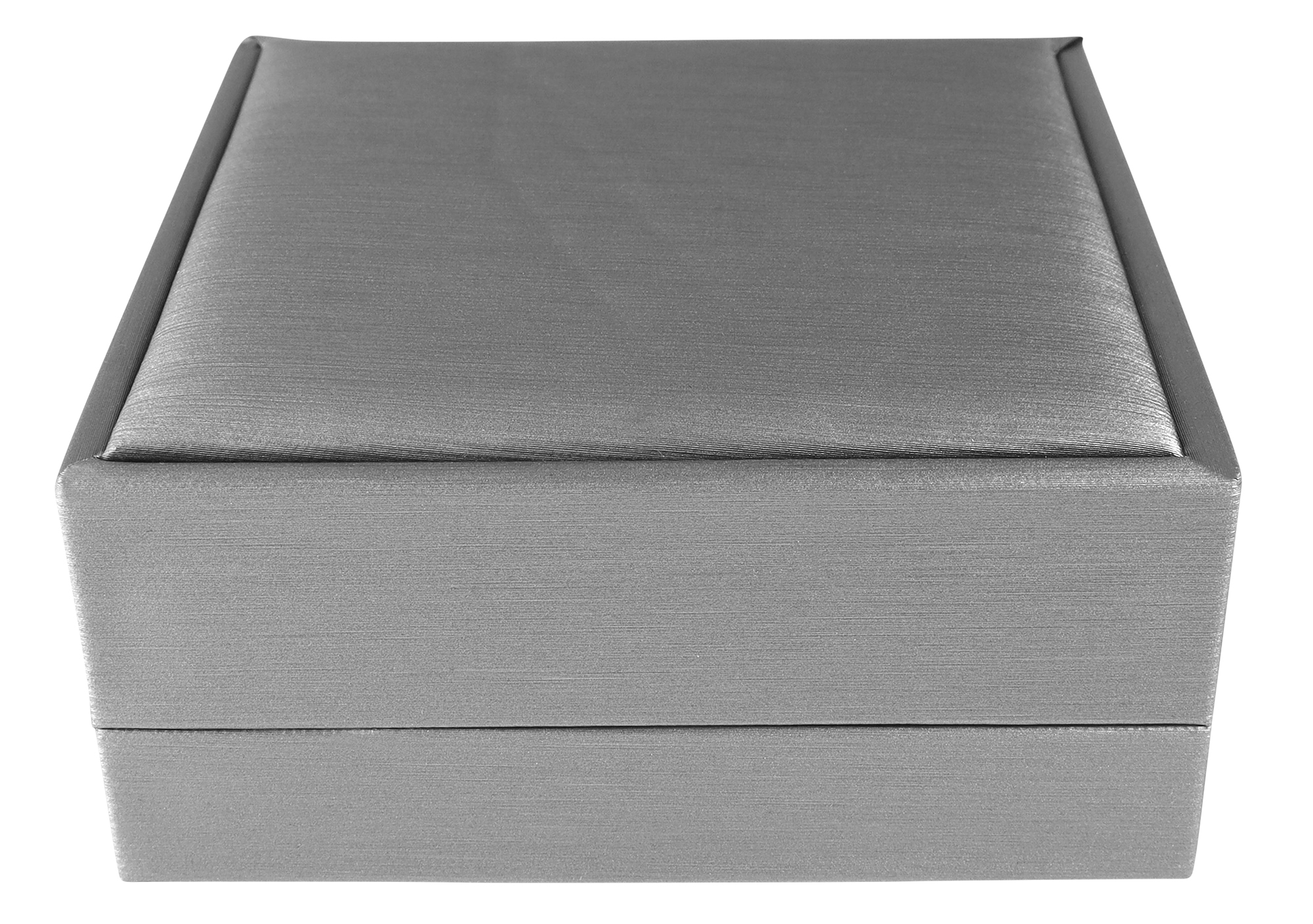 Diese besonders bezaubernden Schmuckboxen sind aus schwerem Holz gefertigt und mit einer schützenden Kunststoffschicht versehen, was sie besonders stabil und widerstandsfähig macht und ihnen ein hochwertiges Äußeres verleiht. Der Bezug der Boxen ist in einem metallisch glänzenden Schiefergrau gehalten, während sie im Innenraum mit einem klassisch schwarzen Samtpolster ausgestattet sind. Die hochwertigen Klappboxen sind in unterschiedlichen Größen und für unterschiedliche Schmuckstücke erhältlich.