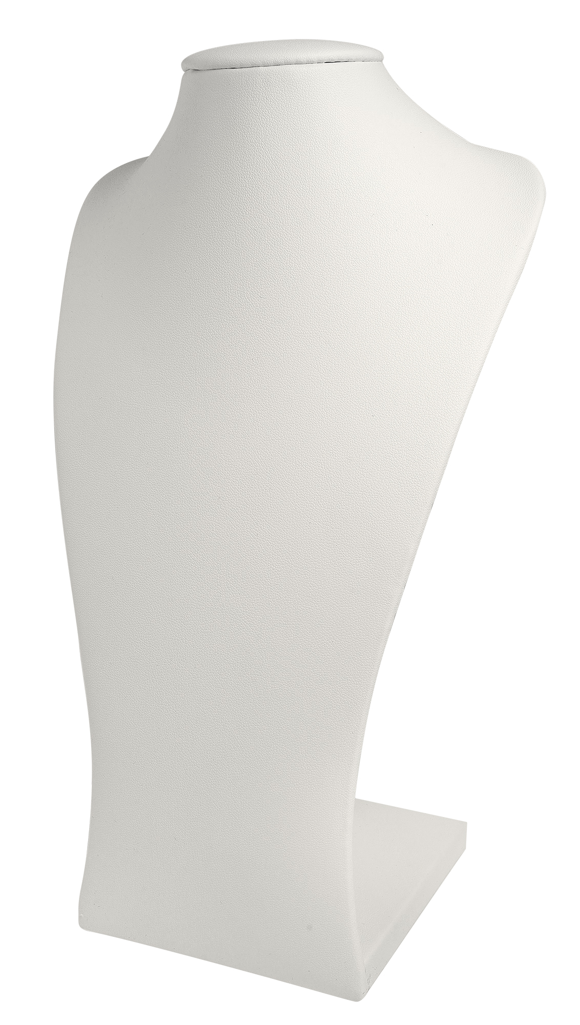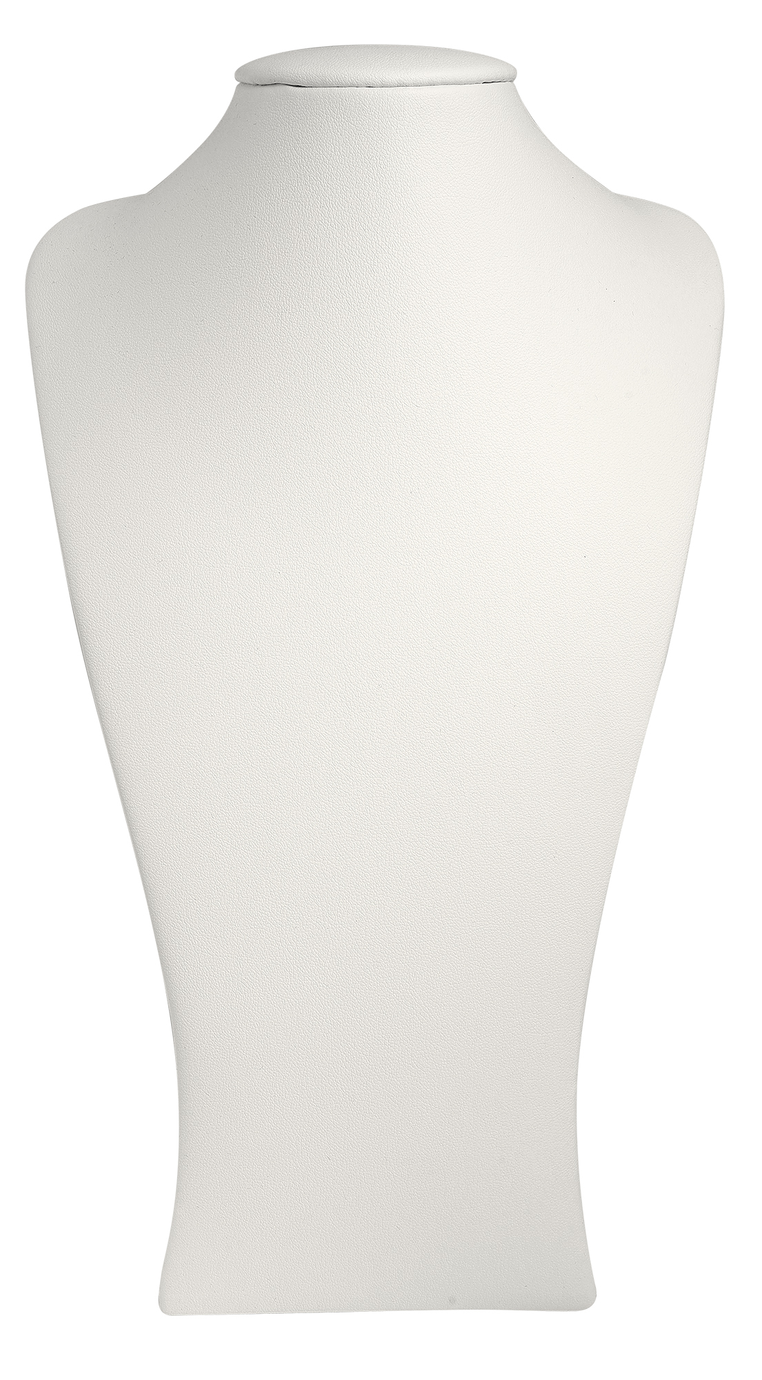 Elegante, weiße Schmuckbüste zur stilvollen Präsentation von Halsketten und Colliers. Ideal für Juweliere, Einzelhändler und zur ansprechenden Aufbewahrung von Schmuck. Die schlichte, weiße Farbe lenkt den Fokus auf die präsentierten Schmuckstücke.