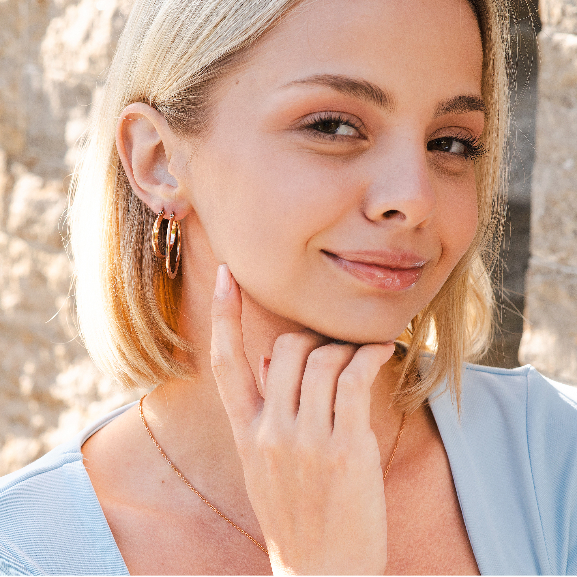 Produktinformationen ""Sheila" Akzent Creolen aus Edelstahl, 3er Set, Ionenplattiert, roségoldfarben"