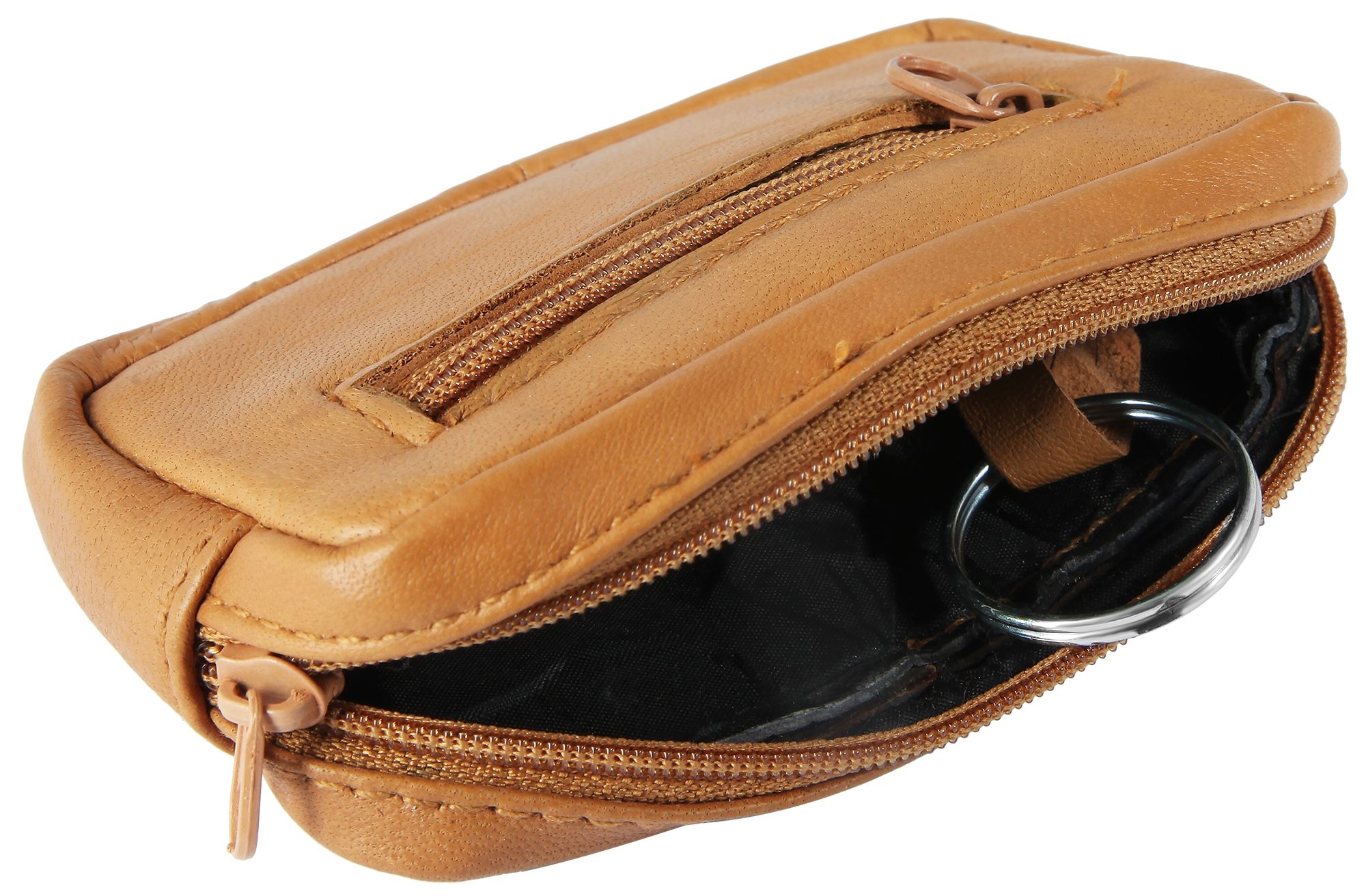 Der Schlüsselbeutel der Marke Leonardo Verrelli wurde aus echtem Schafsleder hergestellt. Aufgrund des hochwertigen und natürlichen Materials ist das Etui besonders langlebig, widerstandsfähig und sehr geschmeidig. Die Naht im Außen- und Innenbereich sorgt für gute Stabilität und Haltbarkeit. An den Schlüsselbeutel ist ein Schlüsselring mit einem Durchmesser von 25 mm angebracht. Dieser ist im Inneren des Beutels über einen ca. 5 cm lange Lederriemen mit dem Schlüsselbeutel verbunden. Der Ring eignet sich hervorragend zum Anbringen von Schlüsseln oder Anhängern, aber auch zum Befestigen an Taschen oder Schlüsselbrettern. Das Schlüsseletui verfügt über zwei Reißverschlussfächer außen. Das Etui hat eine Länge von 8 cm, eine Breite von 12 cm und eine Tiefe von 2,5 cm. Der Schlüsselbeutel ist perfekt um Schlüssel zu verstauen. Kleingeld, aber auch Karten können bequem untergebracht werden. Klein, aber mit großer Wirkung überzeugt das klassische Schlüsseletui.