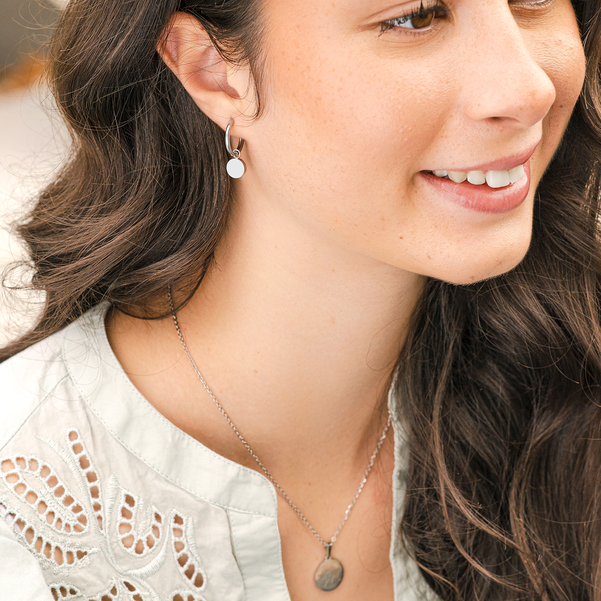 Das besondere Highlight - Der abnehmbare, runde Anhänger mit einem Durchmesser von 8 mm. So können Sie aus einer klassischen Basic-Creole einen auffälligen Hingucker machen. Der Anhänger kann zudem individuell graviert werden, was "Soile" zu einem persönlichen Schmuckstück macht.