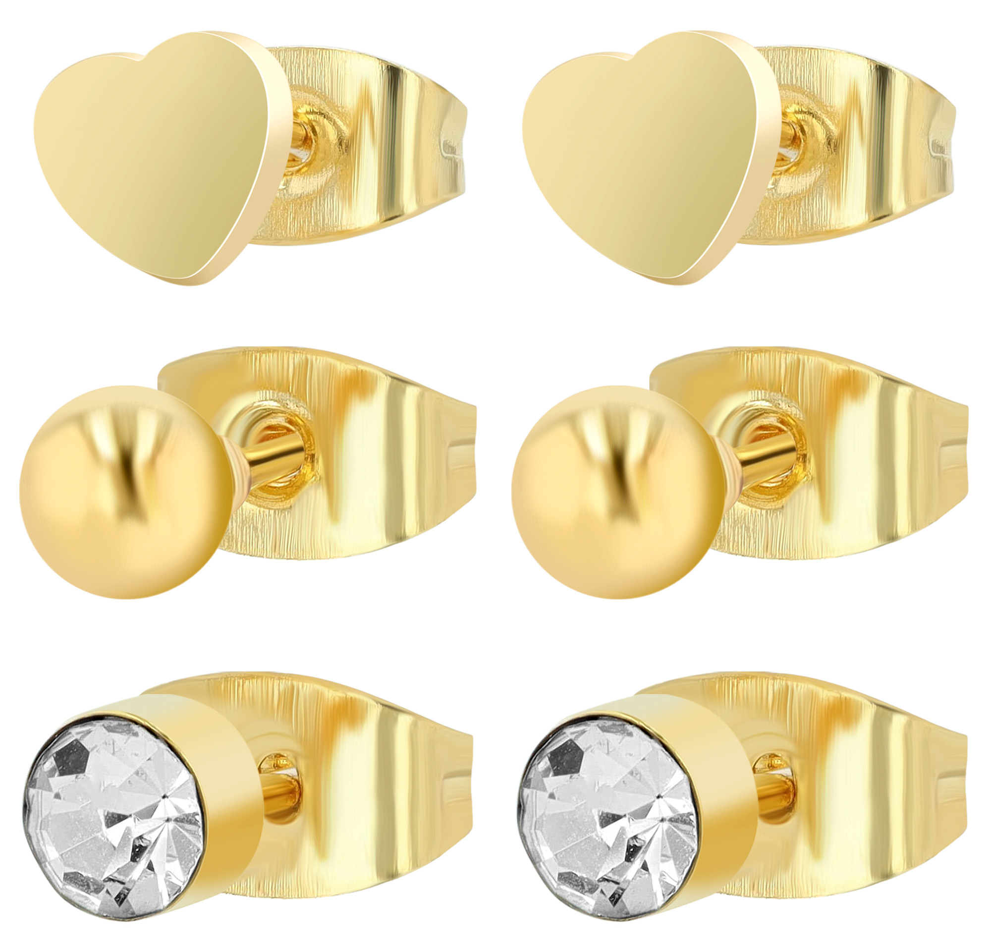 Produktinformationen ""Soleil", Edelstahl Ohrstecker, 3 Paar, goldfarbig (VE12)"