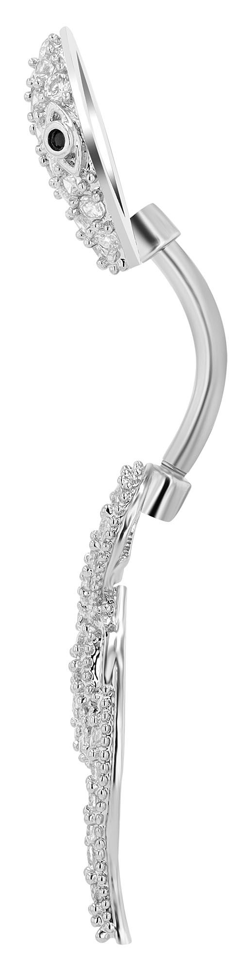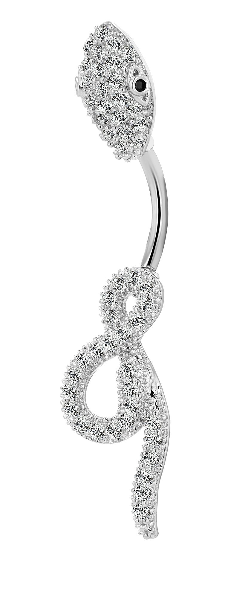 Der Stab hat eine Stärke von 1,6 mm und eine Länge von 11 mm, während die Kugel einen Durchmesser von 5 mm aufweist. Insgesamt weist das Piercing eine Gesamtlänge von 4,5 cm und eine Breite von 1,2 cm auf. Im Design einer Schlange gefertigt und mit funkelndem Besatz verziert wird der Bauchnabelpiercing zum absoluten Blickfang.
