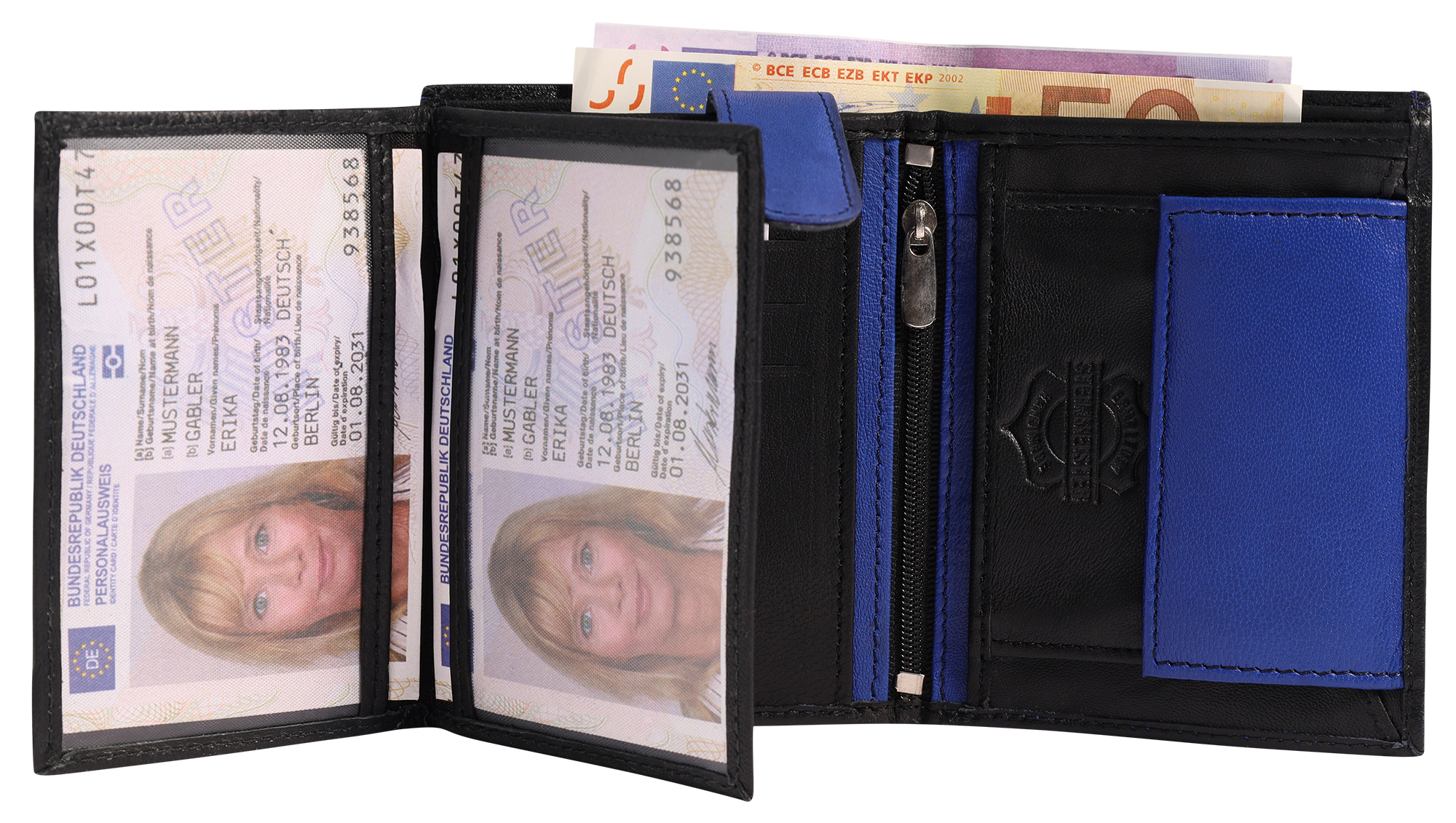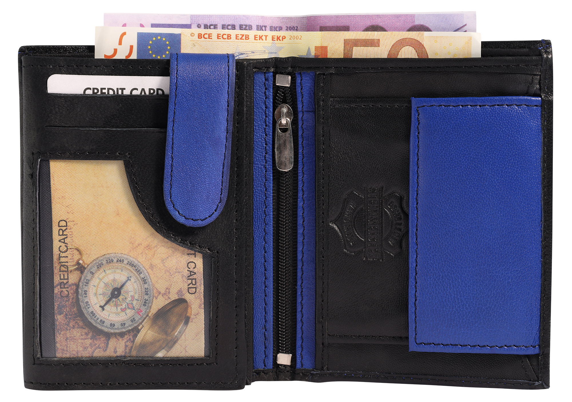Produktinformationen "Steinmeister Geldbörse aus Echtleder, Hochformat, schwarz/dunkelblau"