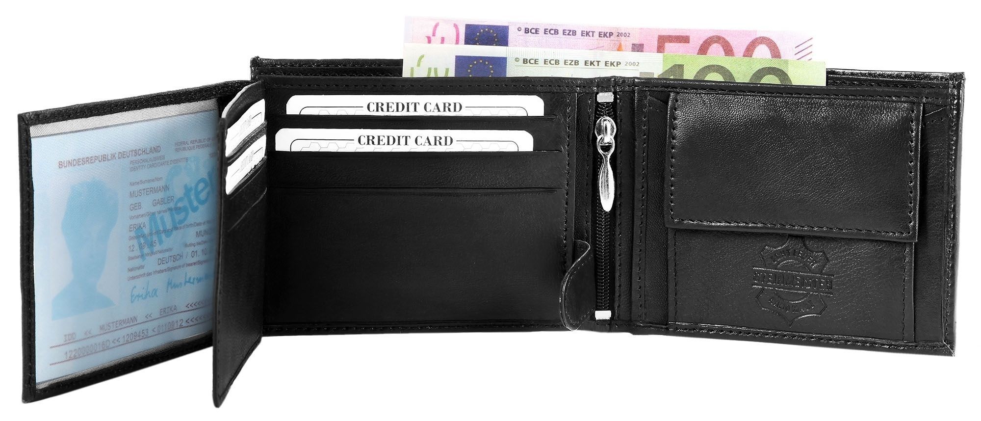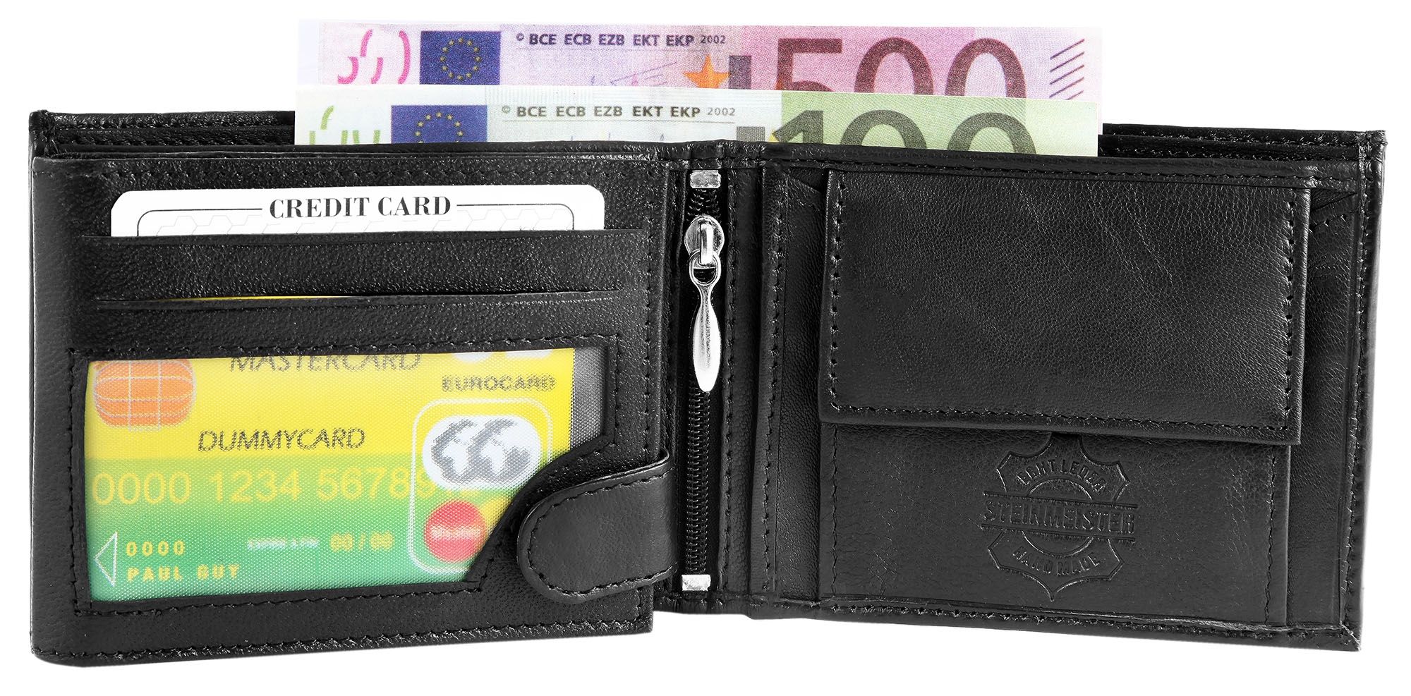 Produktinformationen "Steinmeister Geldbörse aus Echtleder, Querformat, schwarz"