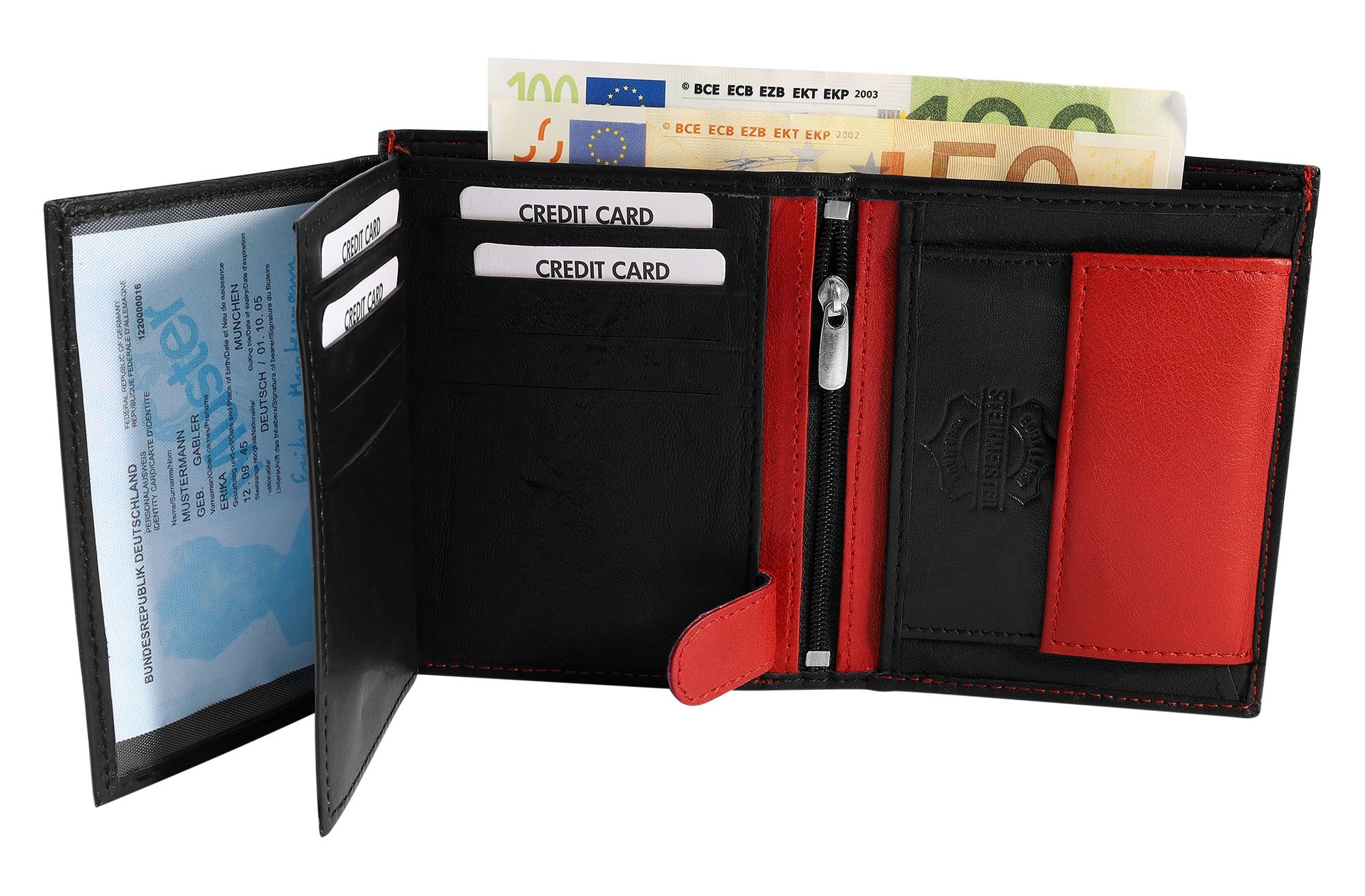 Produktinformationen "Steinmeister Herrengeldbörse aus Echtleder, Hochformat, schwarz/rot"